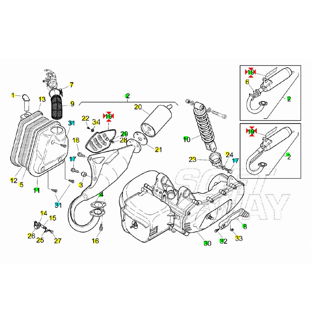 (R.24593) Vendo protezione scarico usata per scooter Aprilia Rally 50 1994 - 1995 , Aprilia Rally 50 LC 1996 - 1997, SR Stealth con codice Aprilia AP8238103 , per applicazioni vedere foto