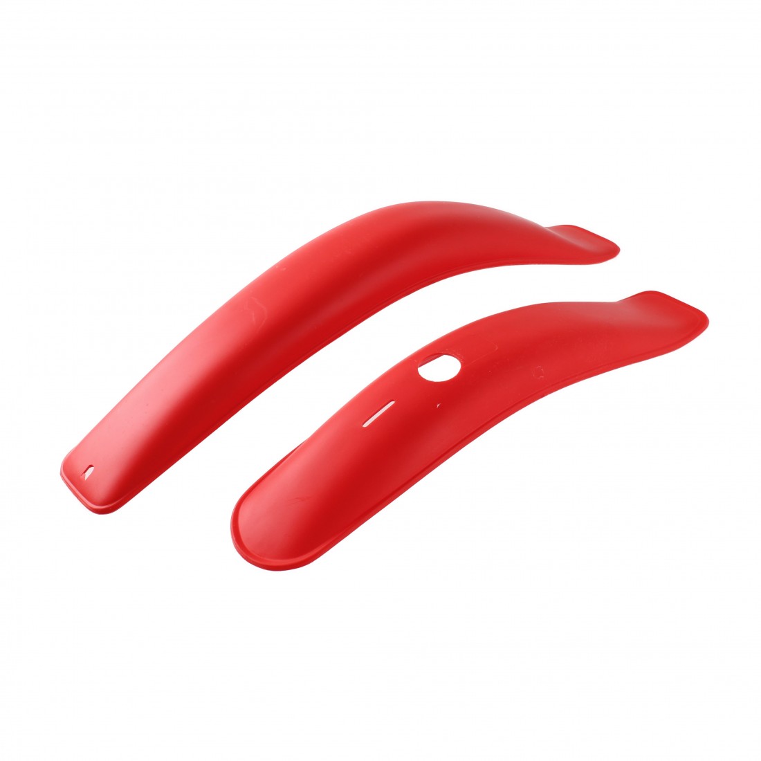 (R.17052) Vendo coppia parafanghi nuovi per BMX con ruote del 20 vintage in plastica di colore rosso marchiati 055/A e 055/P