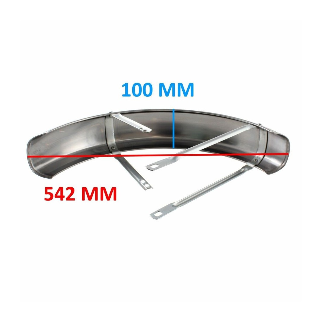 (R.13067) Vendo parafango anteriore nuovo in acciaio inox per Atala Rizzato Califfone con doppie aste di fissaggio e ampiezza 542 mm con larghezza 100 mm e con leggeri segni di magazzinaggio , per misure vedere foto