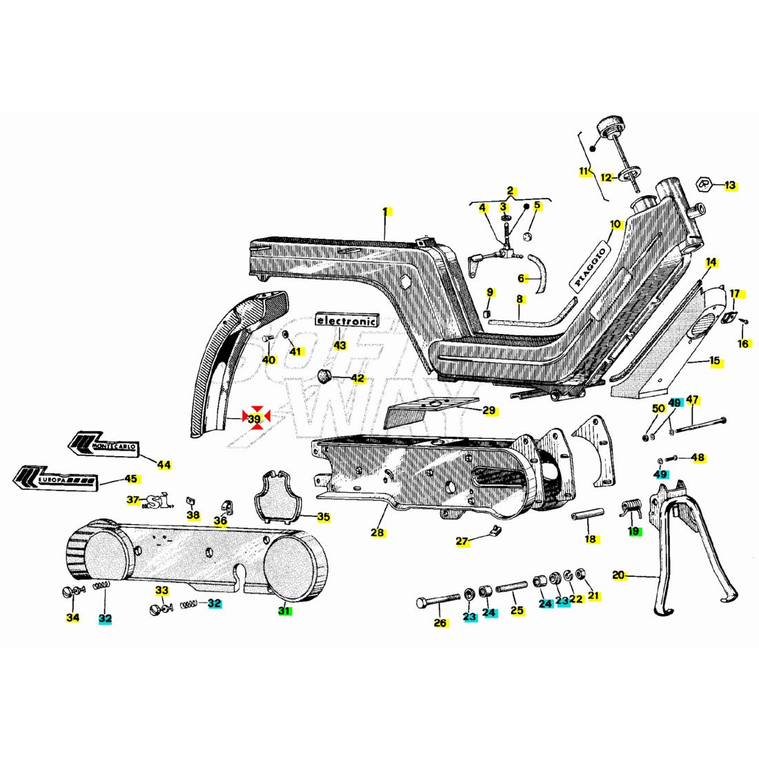 (R.23098) Vendo parafango posteriore nuovo per Piaggio SI prima serie in ferro con codice Piaggio 1852853 , per applicazioni e spaccato vedere foto