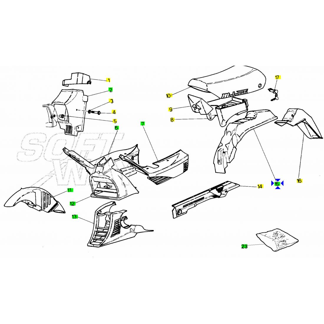 (R.23340) Vendo parafanghi posteriore nuovo con vernice leggermente grattata per Malaguti Fifty Full CX dal 1989 di colore nero con codice Malaguti 05603899