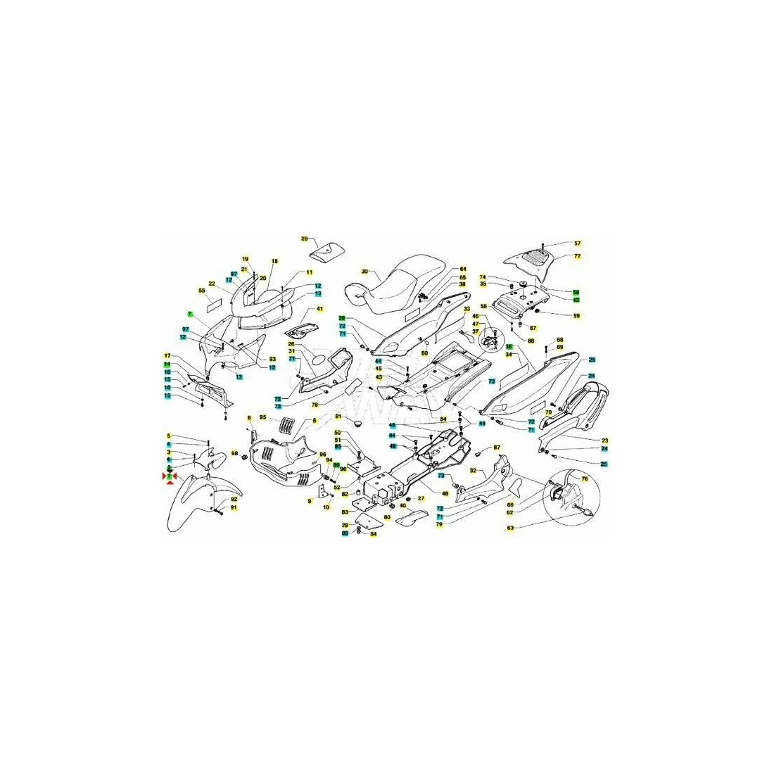 (R.7641) Vendo passaruota anteriore nuovo di colore rosso Burgundy 8E82 per Cagiva Navigator , Canyon , Gran Canyon 500 - 900 - 1000 cc dal 1996 per telai M100AA , M300AA , M500AA e codice Cagiva 80N080047 - 80047, per misure con applicazioni ed esploso vedere foto