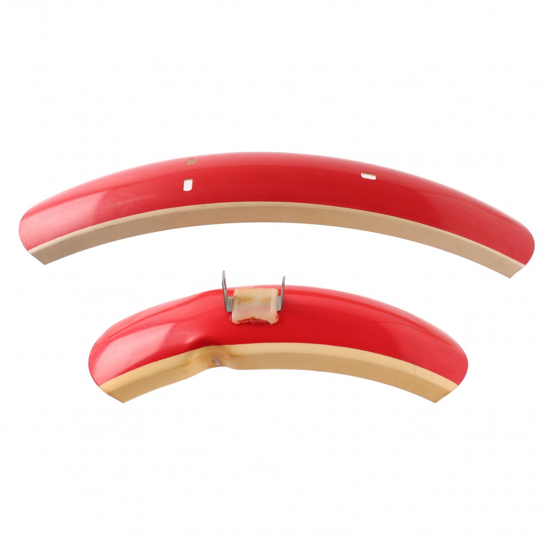 (R.17215) Vendo coppia parafanghi nuovi anteriore e posteriore per ciclo cross Atala del 16 vintage di colore rosso e bianco , ingialliti e con leggeri segni di magazzinaggio , il prezzo si intende per la coppia , per misure vedere foto