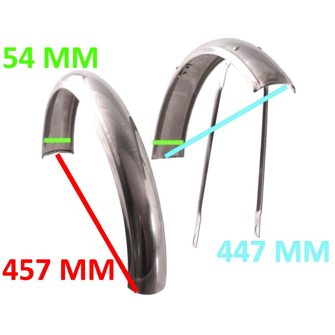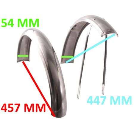 (R.22079) Vendo coppia di parafanghi ( anteriore e posteriore ) da 20 nuovi con larghezza da 54 mm e lunghezza da 457 mm e 447 mm per bicicletta Graziella cromati , il prezzo si intende per la coppia , per misure vedere foto