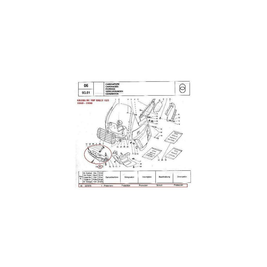 (R.408) Vendo protezione inferiore del motore nuova per Gilera Rc Top Rally 125 anno 1989 e 1990 , originale con codice Gilera 337679 , per misure e applicazioni vedere foto