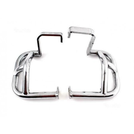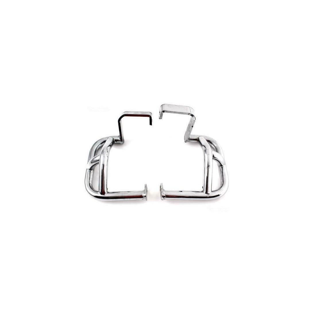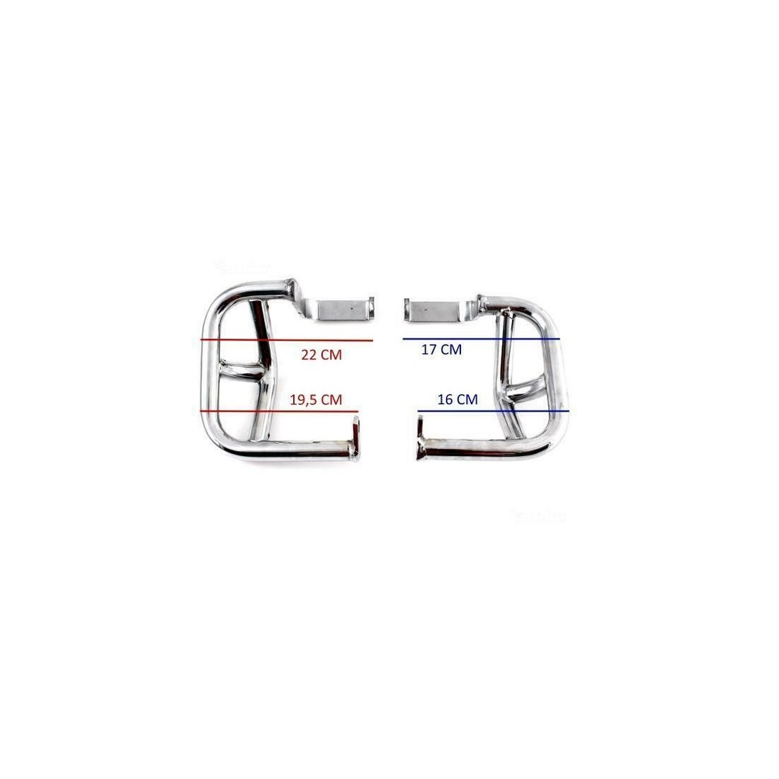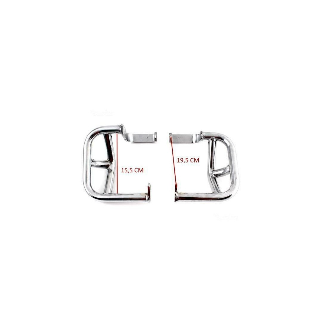 (R.6018) Vendo coppia paracolpi cromati per protezione salva motore nella caduta nuovi per motocicli vintage con l'interasse dei fori di fissaggio che è uguale da entrambe le parti , il prezzo si intende alla coppia , per misure vedere foto