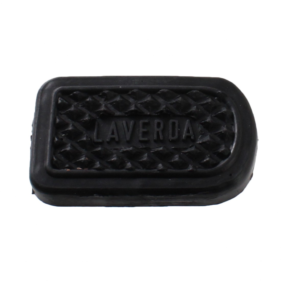 (R.14784) Vendo gommino coprileva pedalina selettore cambio nuovo per Laverda 100 cc vintage di colore nero con scritta Laverda con lunghezza 49 mm e altezza 29,5 mm , per misure vedere foto