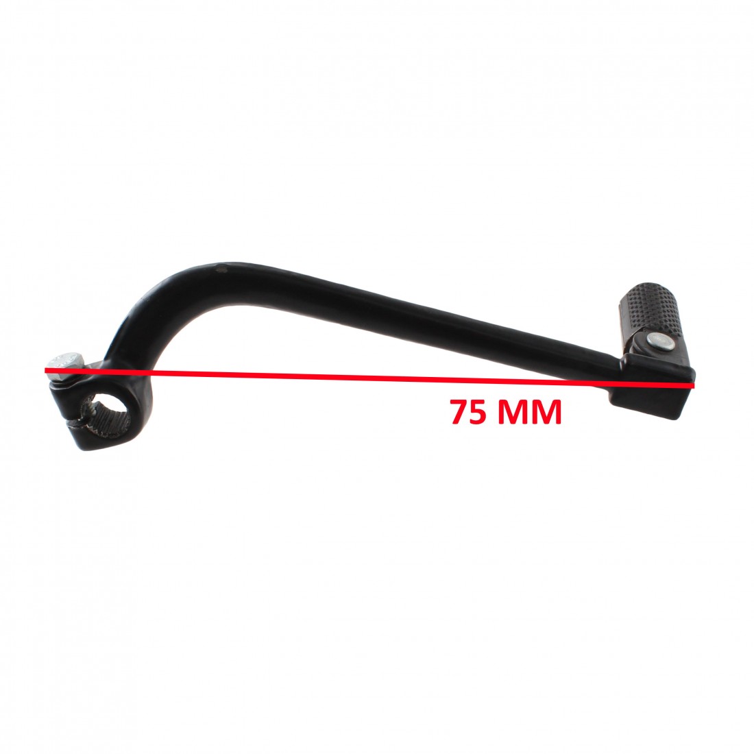 (R.14950) Vendo pedalina cambio nuova  con puntalino snodato per moto varie d'epoca di colore nero con lunghezza totale 75 mm e diametro innesto millerighe interno 13 mm e da dente e dente 14 mm , per misure vedere foto