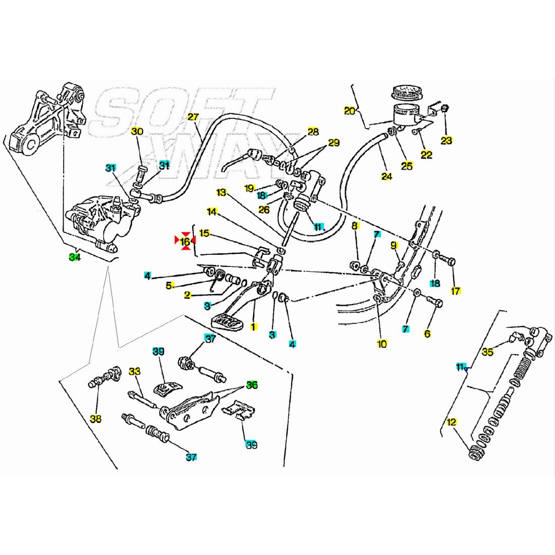 (R.22227) Vendo forcellina con clias nuova dell'asta del freno posteriore per Cagiva Elefant 750 e 900 cc dal 1993 originale Cagiva con codice 800055757 , per applicazioni e spaccato vedere foto