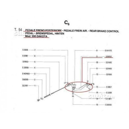 (R.241) Vendo pedale nuovo del freno posteriore a piede per Gilera Dakota 350 e 500 cc. , originale con codice Gilera 328052