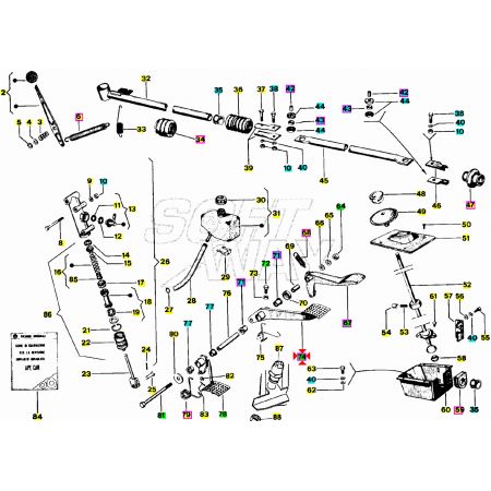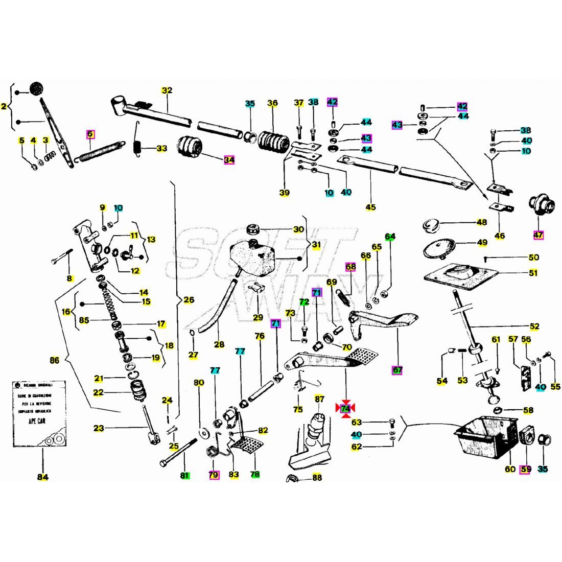 (R.5489) Vendo comando freno a pedale nuovo per Piaggio Ape Car P2 e P3 220 dal 1978 - Ape Car Max Diesel 420 dal 1986 APE TM P703 420 dal 1987 - Ape TM P703 FL2 220 dal 1984 con codice Piaggio 218852 o 253288 , per applicazioni e spaccato vedere foto