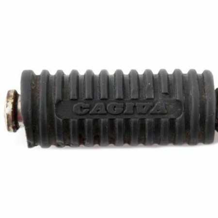 (R.355) Vendo pedalina messa in moto usata lato destro cromata completa di gommino marchiato Cagiva per Aletta Rossa con diametro fissaggio pedalina interno zigrinatura mm 17 e esterno zigrinatura mm 16 , per misure vedere foto