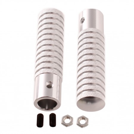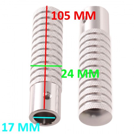 (R.21372) Vendo coppia staffe poggiapiedi nuove per Ciao e ciclomotori vari in alluminio con lunghezza 105 mm , larghezza 24 mm e diametro interno 17 mm , per misure vedere foto