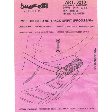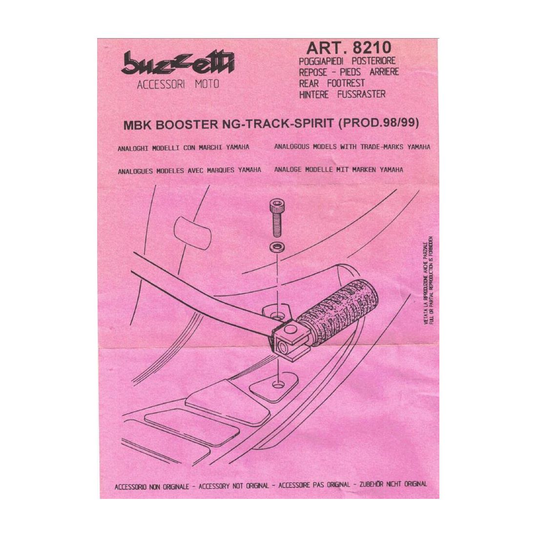 (R.21537) Vendo poggiapiedi con staffa nuovo per MBK Booster NG - Track - Spirit marca Buzzetti con codice 8210 , per istruzioni di montaggio vedere foto