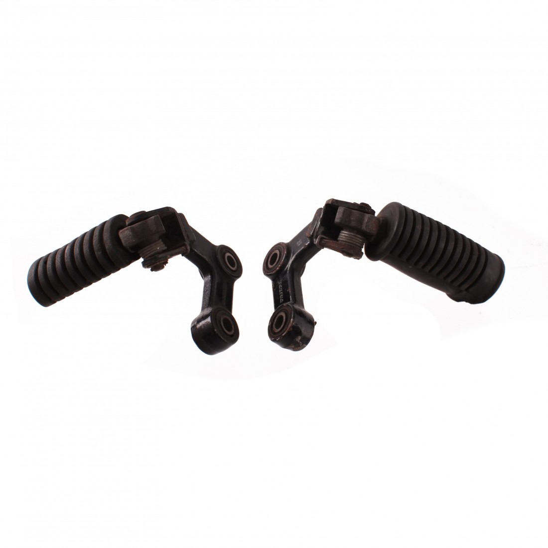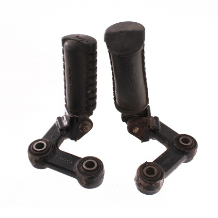 (R.16948) Vendo coppia pedane poggiapiedi passeggero usate con staffe per moto Cagiva vintage di cui non conosciamo il modello con gommini spaiati e screpolati come da foto , il prezzo si intende per la coppia , controllare compatibilità prima dell'acquisto