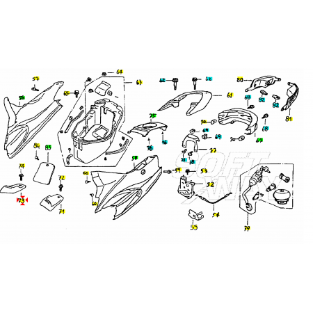 (R.20546) Vendo pedana sinistra nuova poggia piedi posteriore del passeggero per Kymco CX 50 cc dal 1993 con codice Kymco 00154531 , per applicazioni e spaccato vedere foto