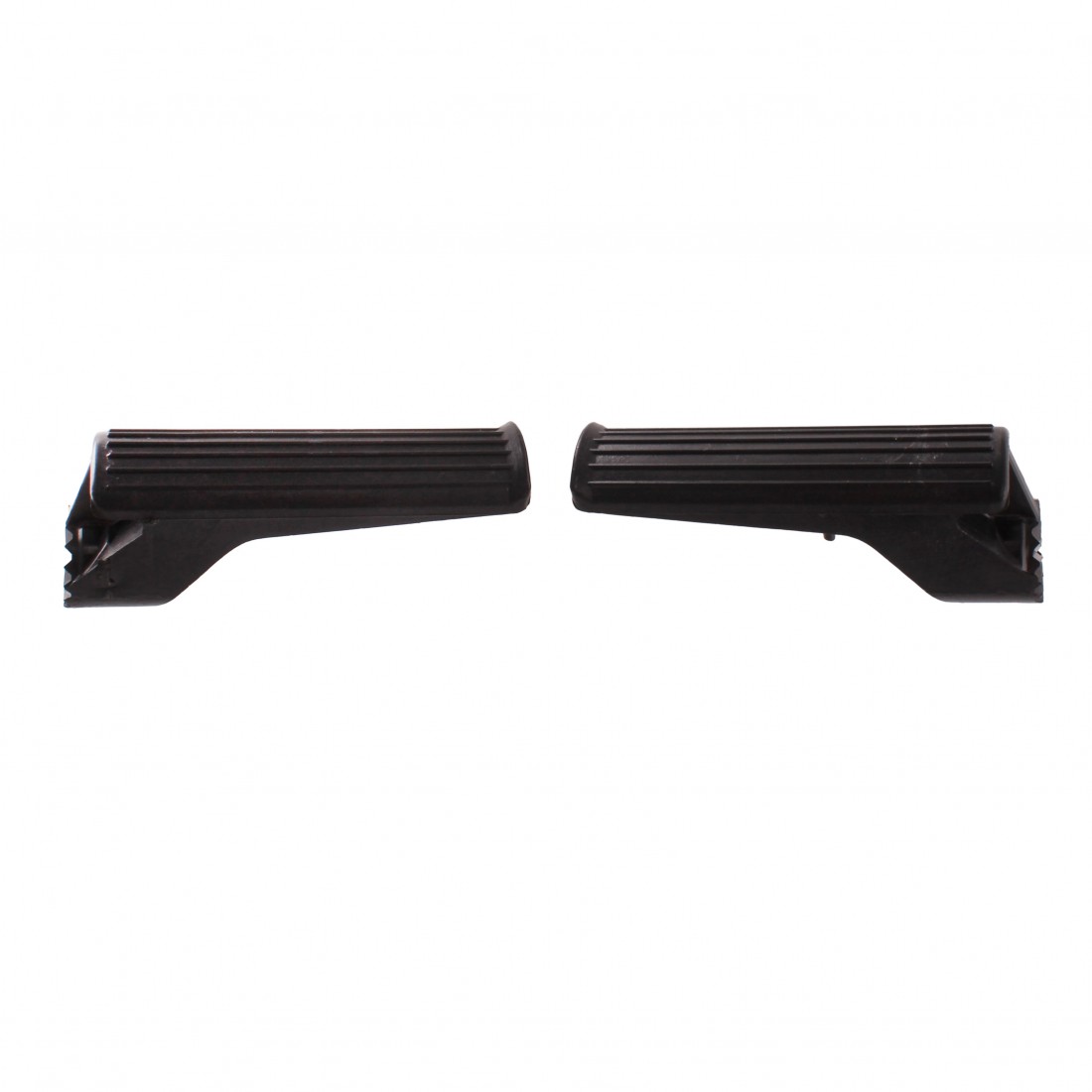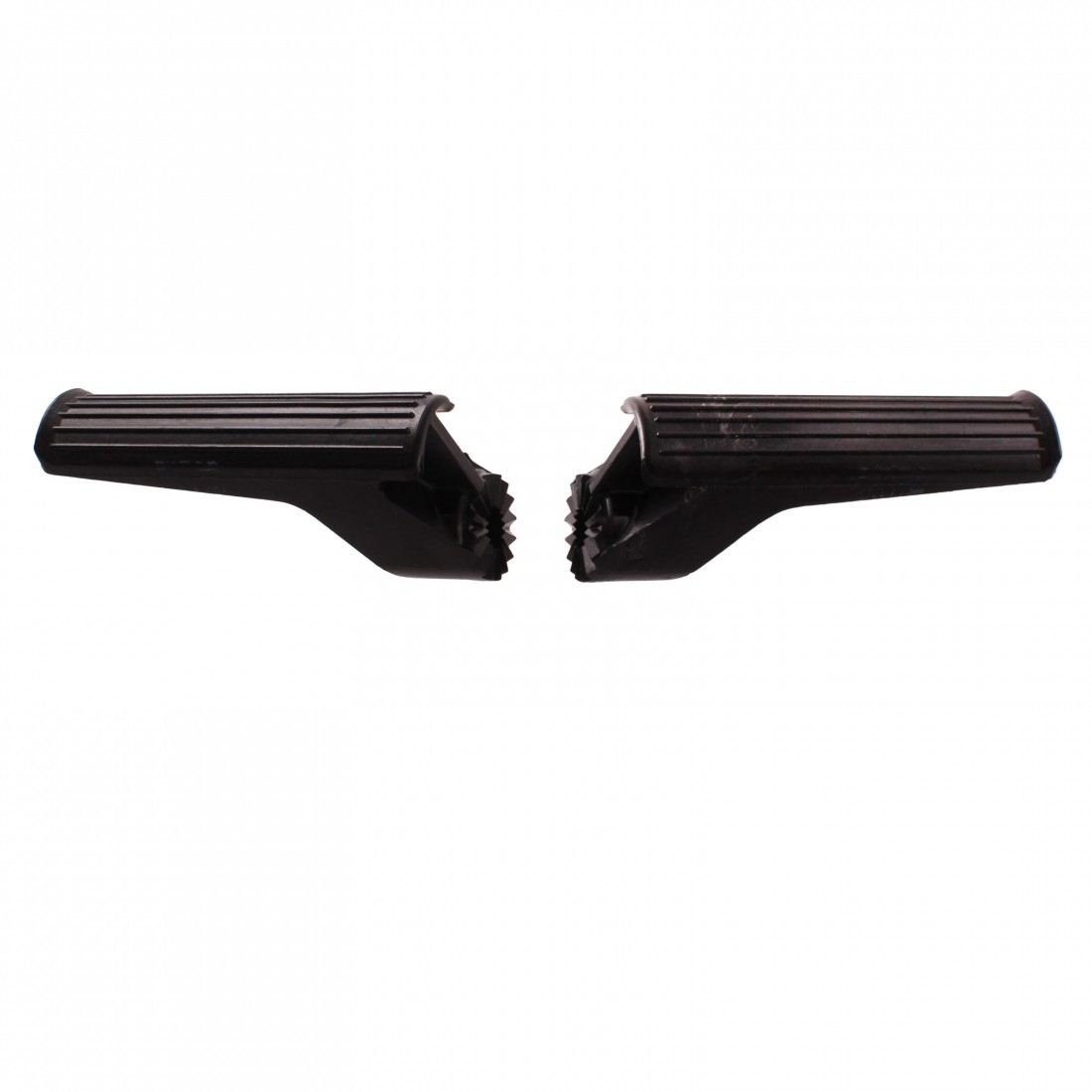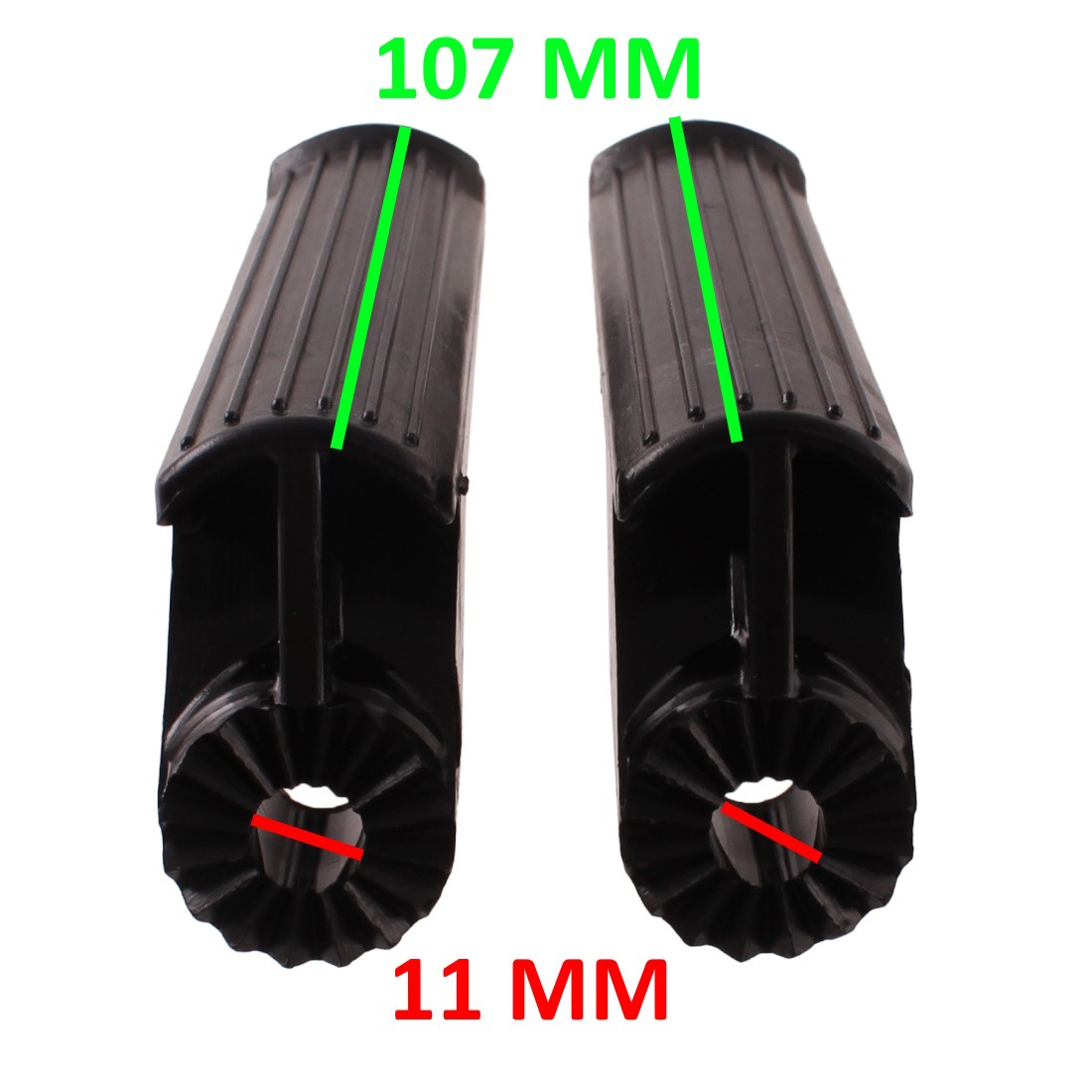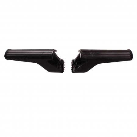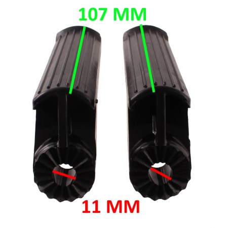 (R.21084) Vendo coppia pedane poggia piedi nuove in plastica per ciclomotori vari vintage di colore nero con lunghezza 107 mm e diametro foro da 11 mm , il prezzo si intende per la coppia , per misure vedere foto