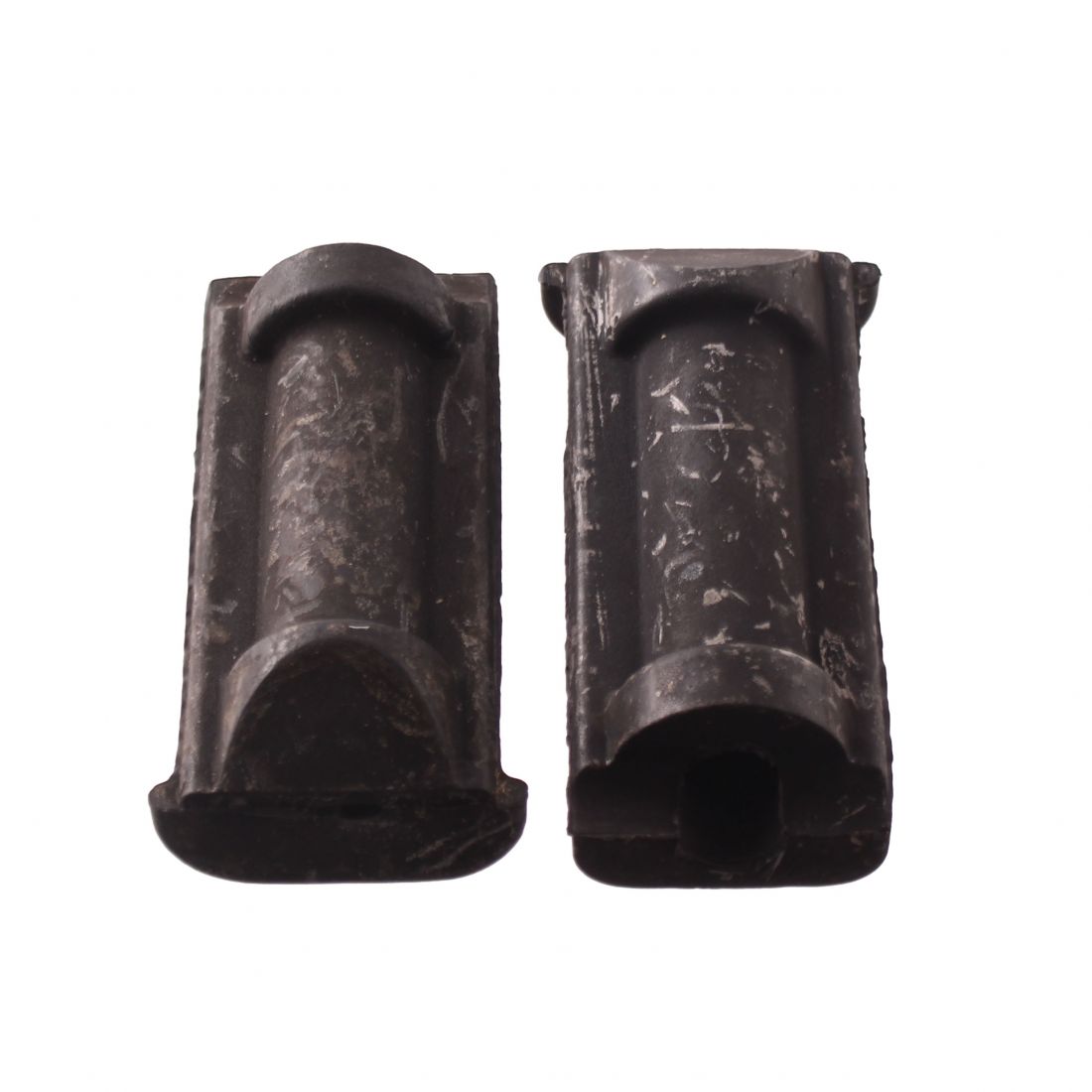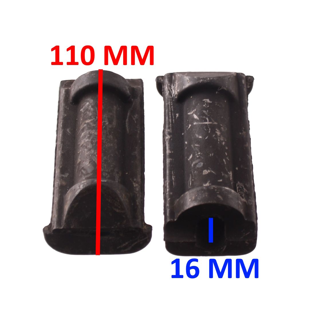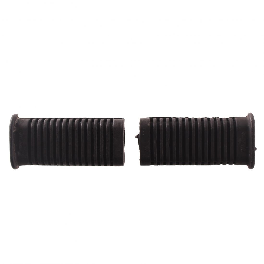 (R.22448) Vendo coppia gomme delle pedane poggiapiedi nuova originali marcate Malaguti per Malaguti Fifty HF Special dal 1978 - Malaguti BSF dal 1979 - Malaguti Fifty TOP dal 1982 - Malaguti Fifty FULL CX dal 1982 - Malaguti Fifty HF dal 1982 marchiate Malaguti con diametro interno 16 mm e lunghezza totale 110 mm , per misure vedere foto