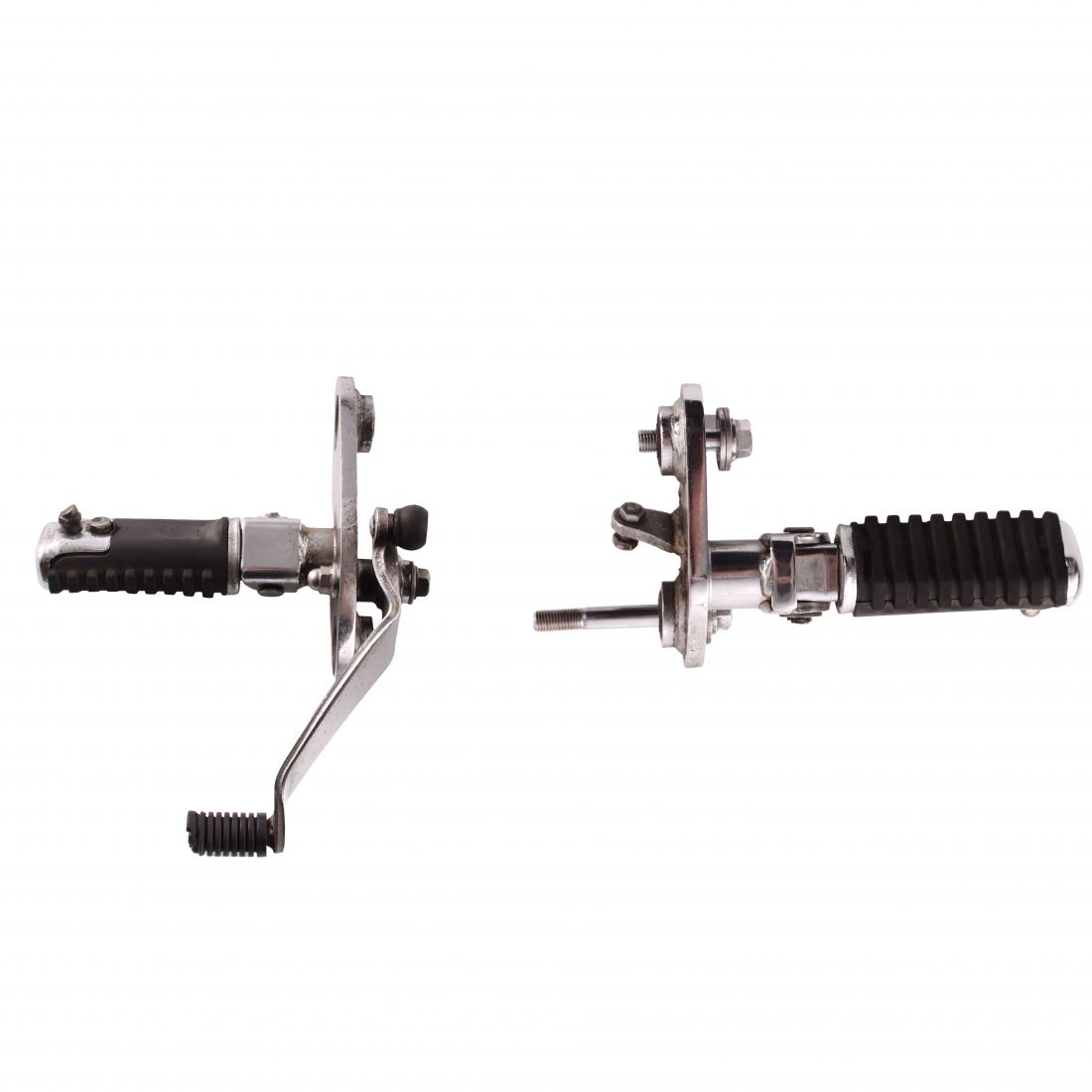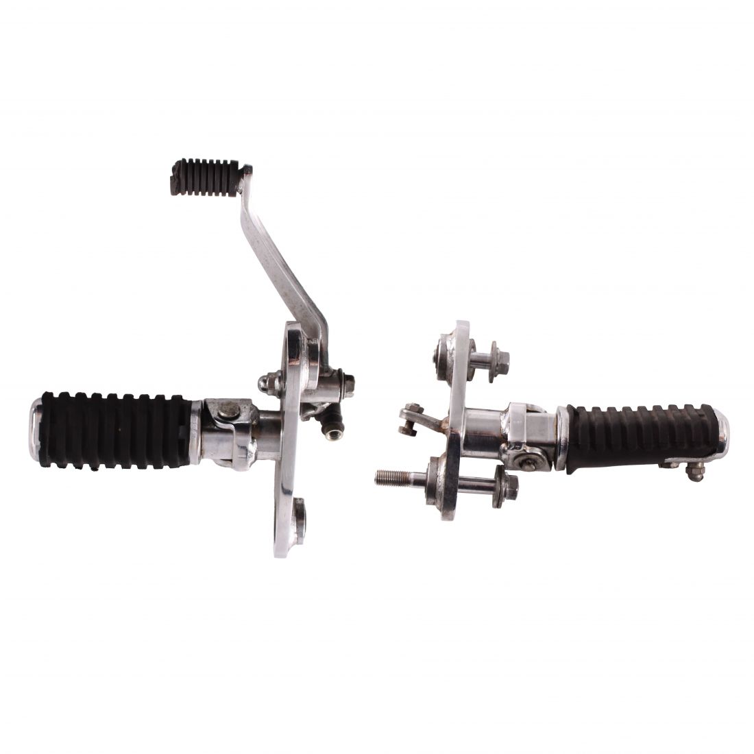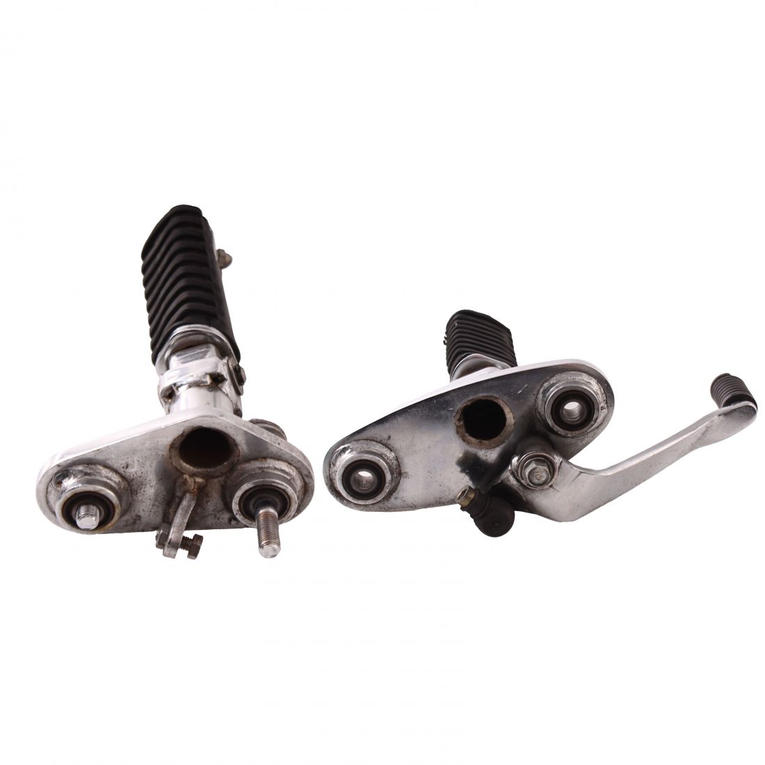 (R.23745) Vendo coppia di pedane poggiapiedi usata per moto custom con pedana sinistra completa di pedalina del cambio , il prezzo si intende per la coppia