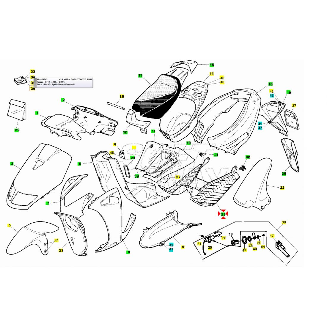 Pedana poggiapiedi Aprilia SR 50 dal...