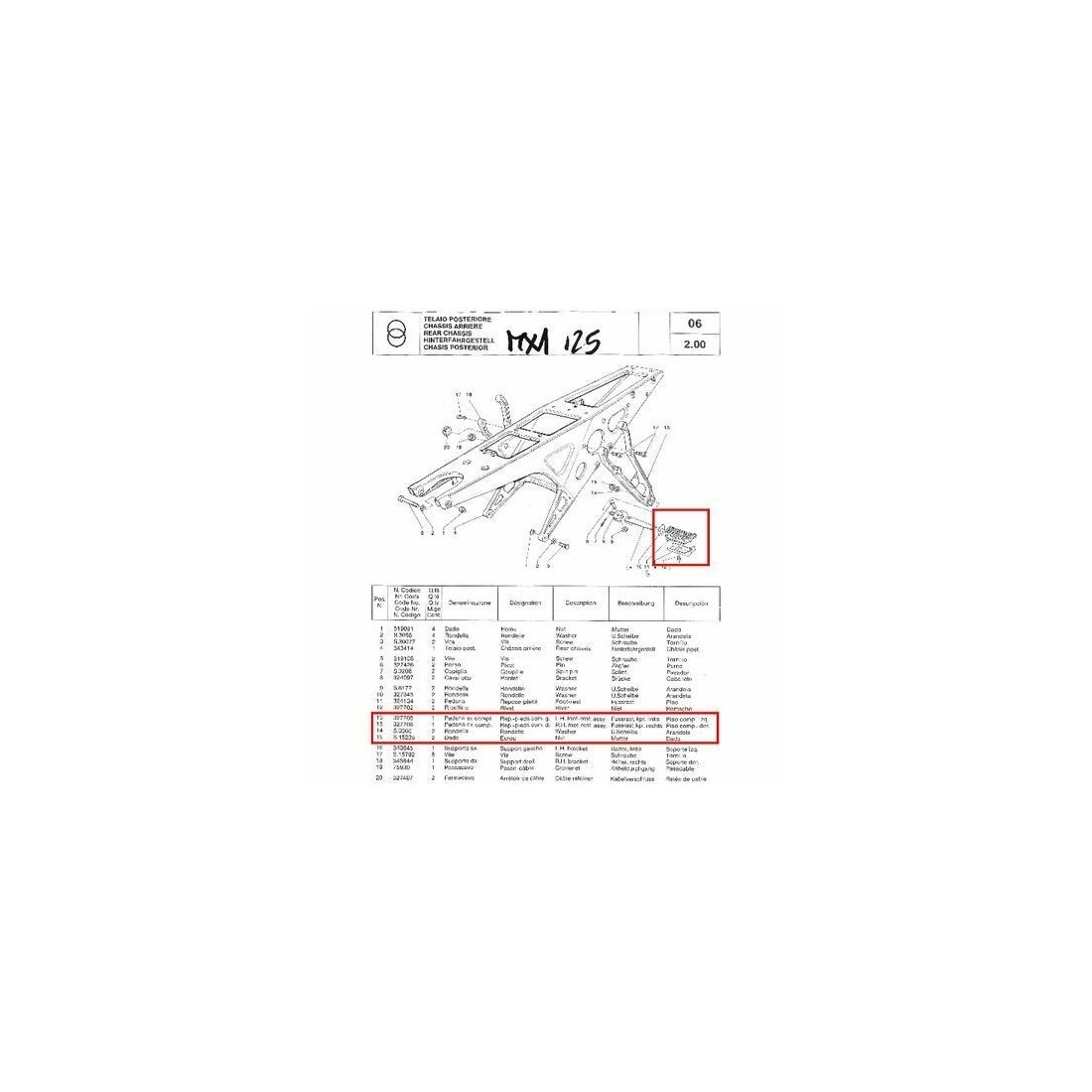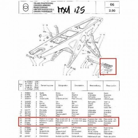 (R.1462) Vendo pedana passeggero posteriore sinistra nuova per Gilera MX1 - KK - KZ 125 cc completa di gomma con codice Gilera 327708 o 3277085 , per esploso vedere foto