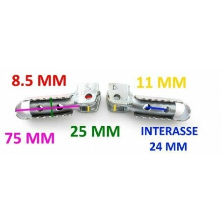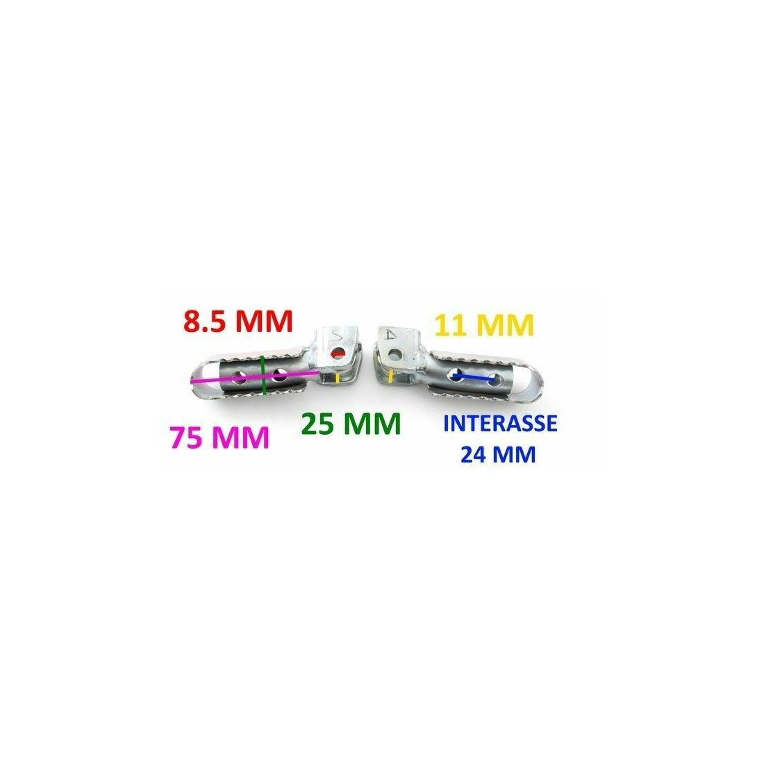 (R.7479) Vendo kit nuovo pedana sinistra e destra poggiapiedi in ferro con denti per ciclomotori e motocicli vari con attacco al telaio , per misure vedere foto