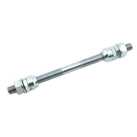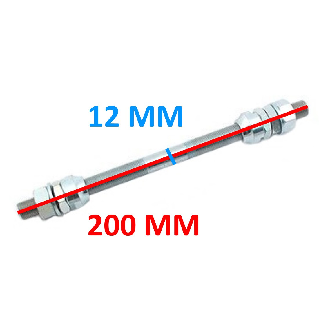 (R.19002) Vendo asse ruota del mozzo anteriore o posteriore nuovo per ciclomotori vari vintage con diametro 12 mm passo 1 e lunghezza 200 mm , completo di coni e dadi con spessori , per misure vedere foto