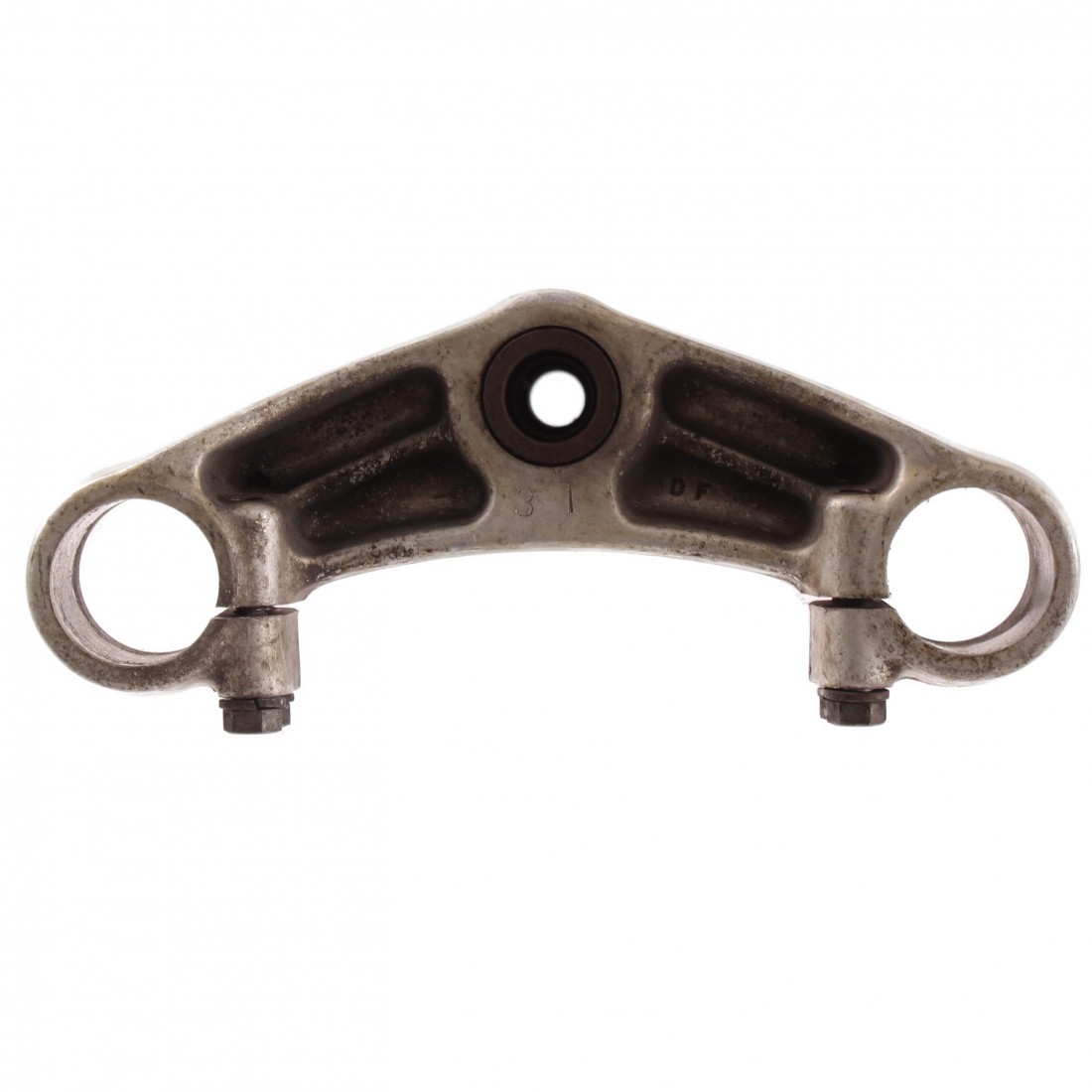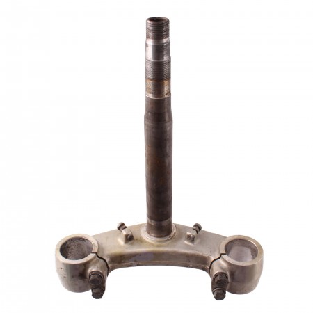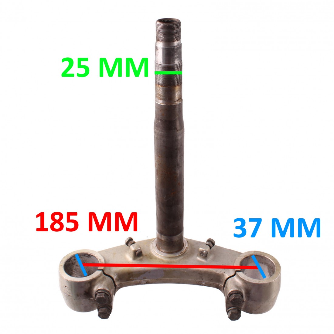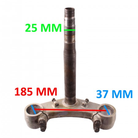 (R.18356) Vendo staffa inferiore usata della forcella anteriore per moto varie vintage con diametro fori steli 37 mm e diametro canotto 25 mm con interasse fori steli 185 mm , per misure vedere foto