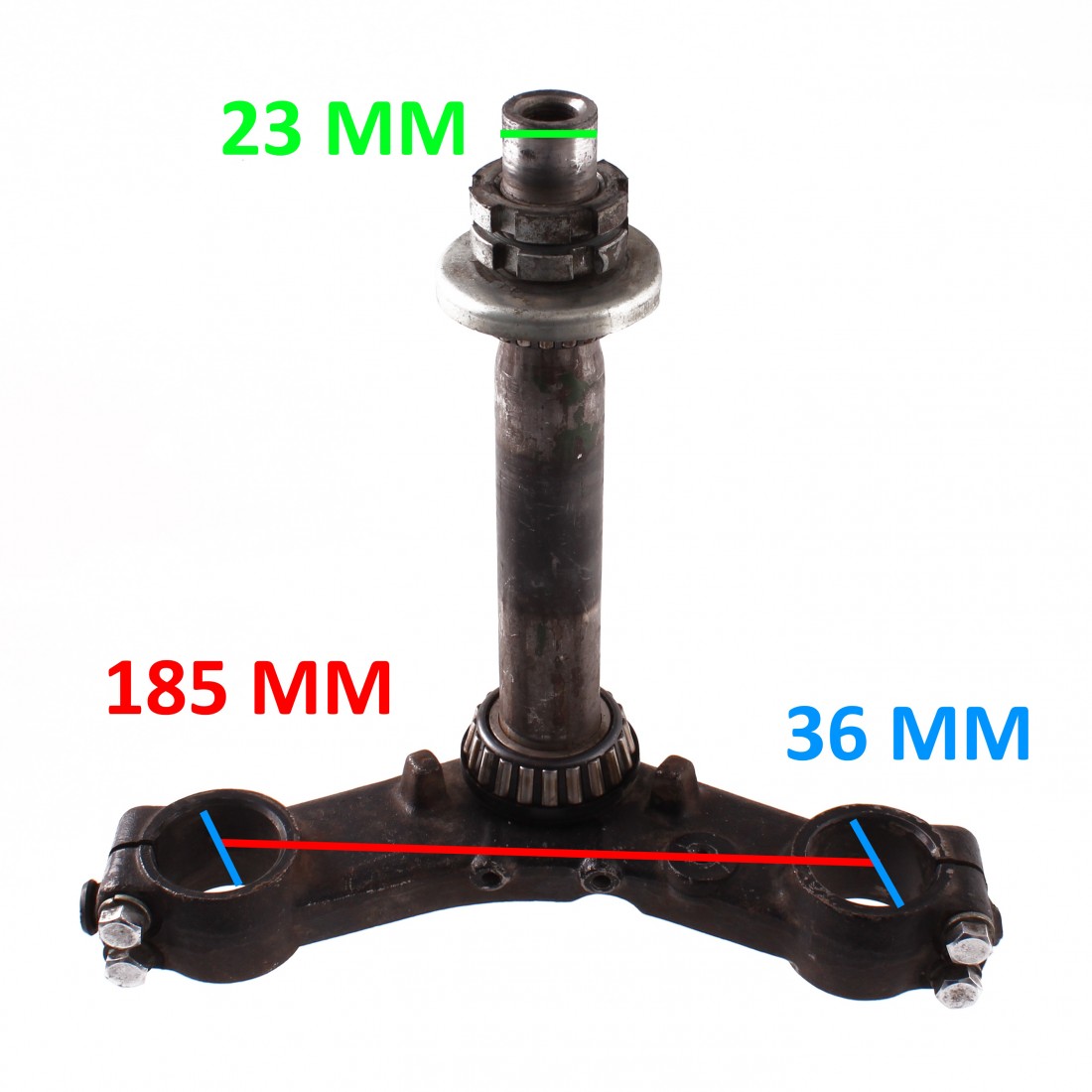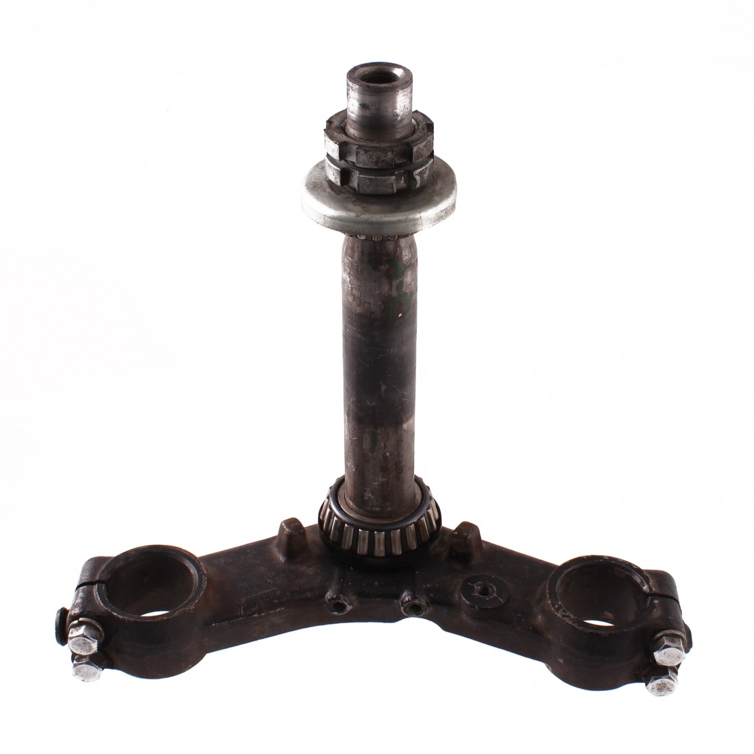 (R.18365) Vendo piastra con canotto forcella inferiore usata della forcella anteriore per Yamaha XS 750 modello 1T4 e 850 cc dal 1978 con codice 1T4233400133 o 1T4233400000 con diametro fori steli 36 mm e diametro canotto 23 mm con interasse fori steli 185 mm , per misure e applicazioni vedere foto