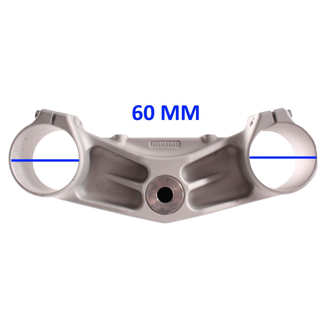(R.24704) Vendo piastra inferiore e superiore usate dello sterzo KTM 690 per steli da 54 mm marchiate 75001031032 inferiore e 75001034032 superiore , con i due fine corsa mancanti (ma riparabili) come evidenziato in foto , per misure vedere foto