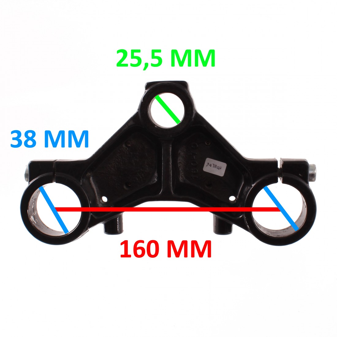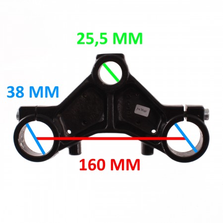 (R.18470) Vendo staffa superiore usata della forcella anteriore per Motron GTO WF marchiata 160-70 con diametro fori steli 38 mm e foro canotto 25,5 mm con interasse fori steli 160 mm , per misure vedere foto