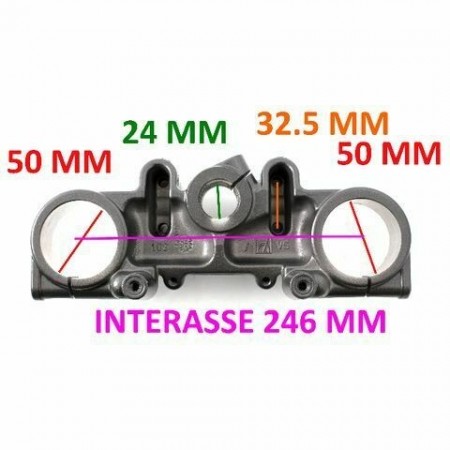 (R.8283) Vendo piastra sterzo superiore nuova per Cagiva Supercity 125 cc dal 1997 per telai N200AA dal 1997 con codice Cagiva 8A0058223 - 58223 , interasse fori 246 mm con diametro fori steli 50 mm , per misure con applicazioni ed esploso vedere foto