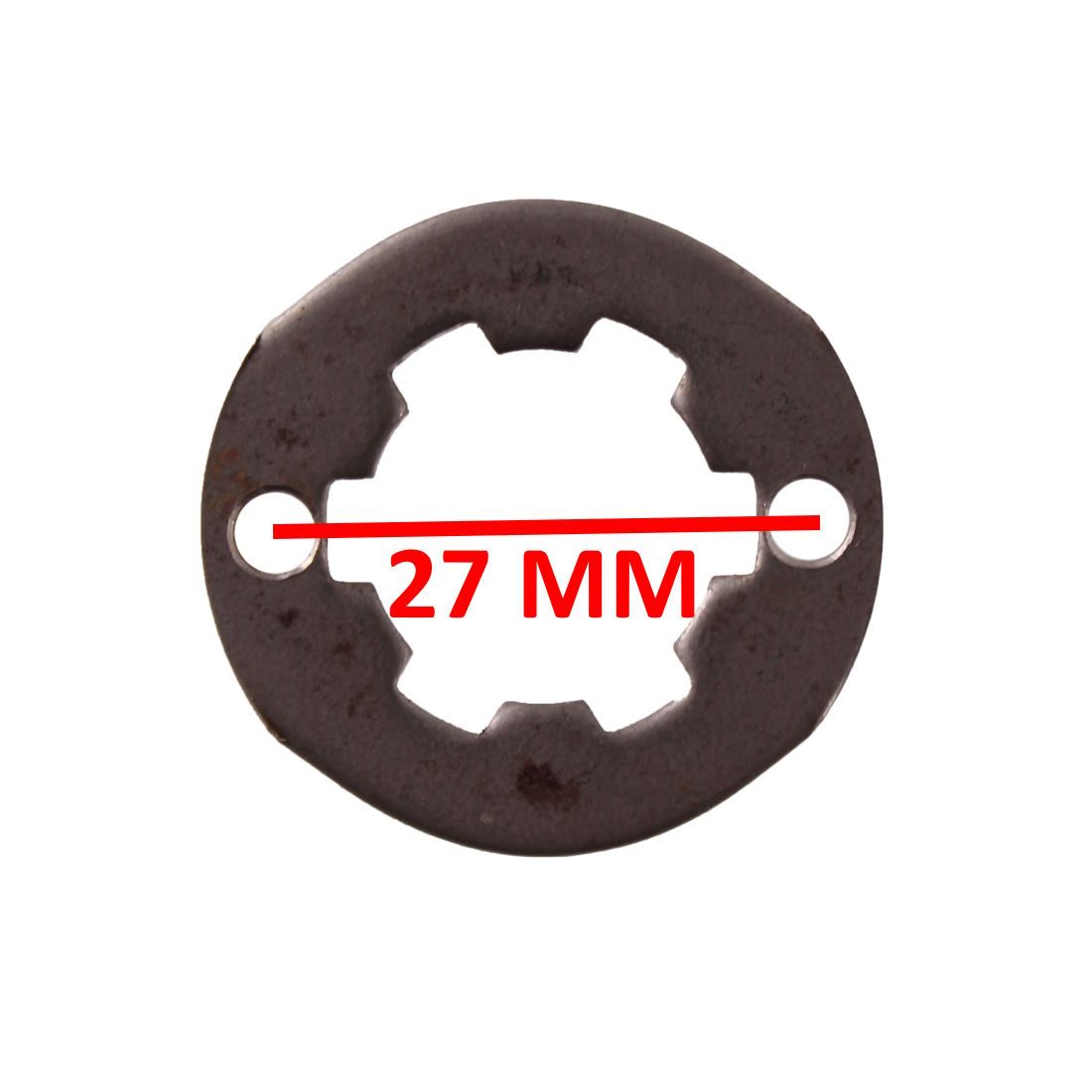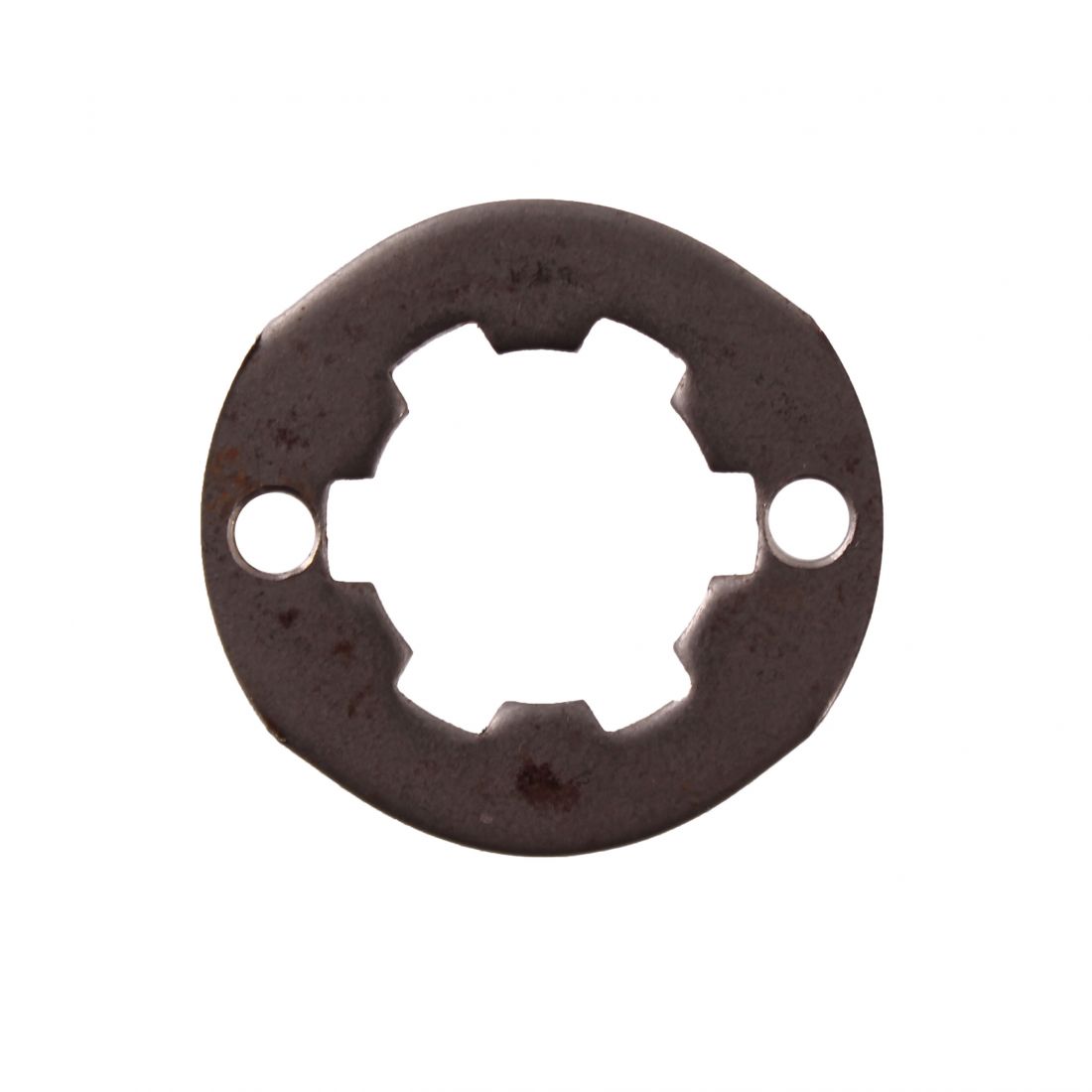 (R.22266) Vendo piastrina di ritegno del pignone nuova per Cagiva con codice 800031038 e interasse fori di fissaggio di 27 mm , per misure vedere foto