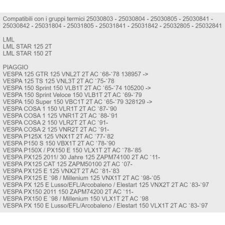 (R.18361) Vendo coppia fasce pistone nuove per gruppi termici Pinasco per Piaggio Vespa fino al 2014 con diametro 63 mm , il prezzo si intende per la coppia , per applicazioni vedere foto