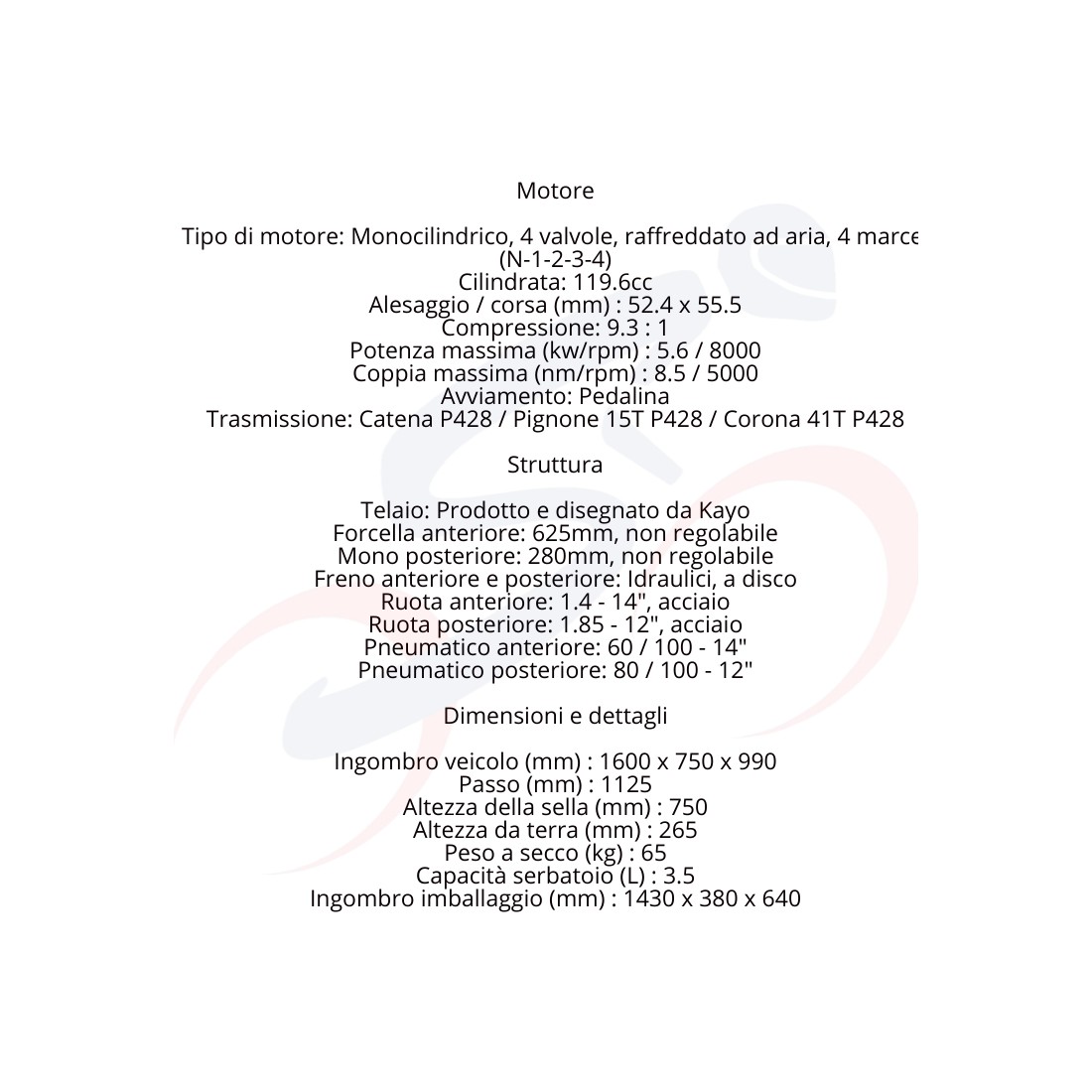 (R.13945) Vendo Pit Bike Kayo TD125 nuova. . Ha un motore a benzina a 4 tempi con cambio manuale che ti consente di risparmiare carburante. Monta uno pneumatico anteriore da 14 pollici e uno posteriore da 12 pollici che ti permette di avere una maggiore stabilità di guida e l'altezza da terra al sedile è di 805 mm.