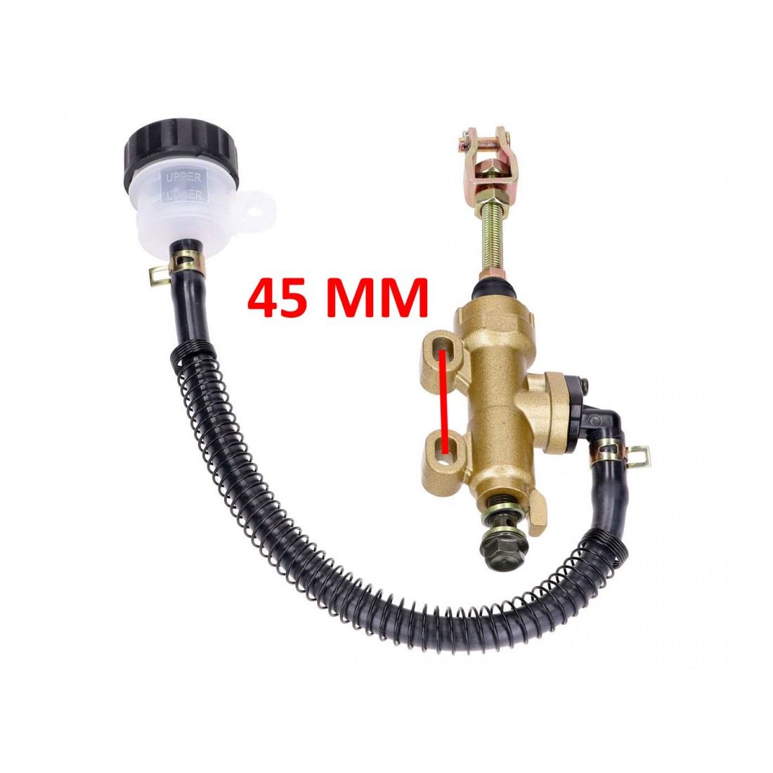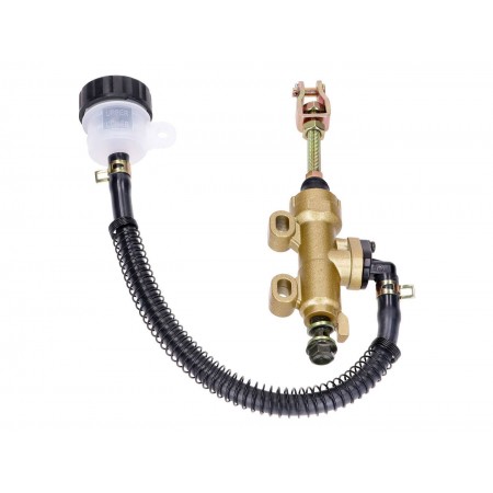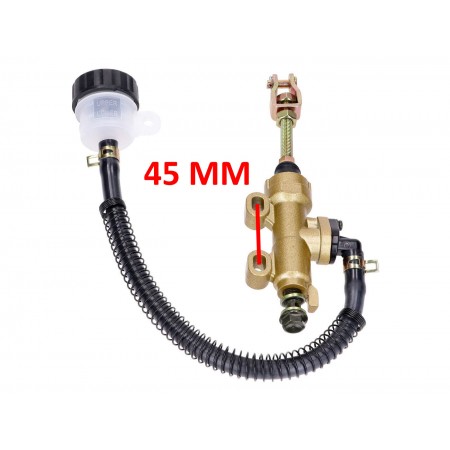 (R.19146) Vendo pompa freno posteriore nuova con vaschetta olio per moto varie con interasse fori 45 mm , per misure vedere foto