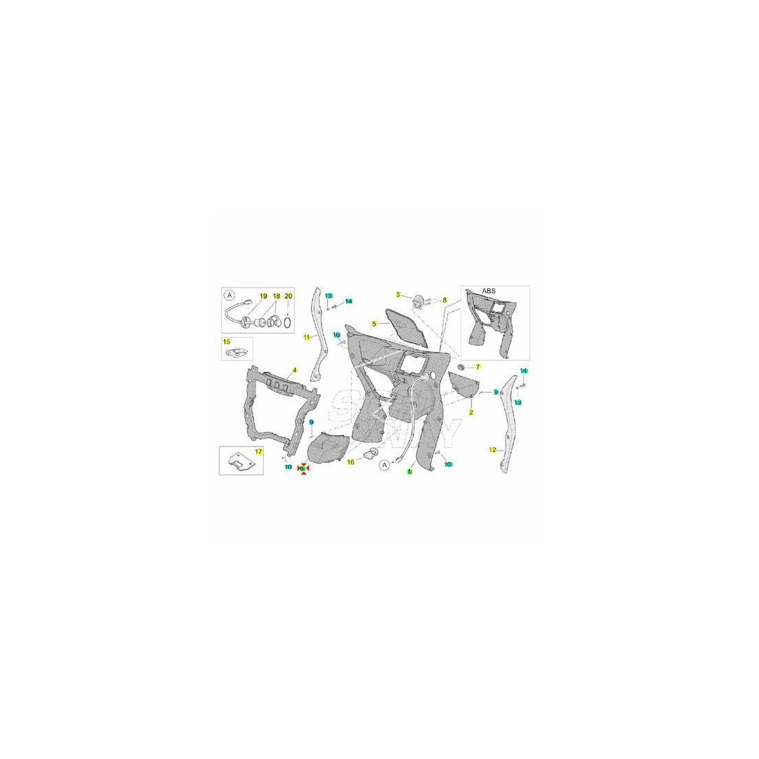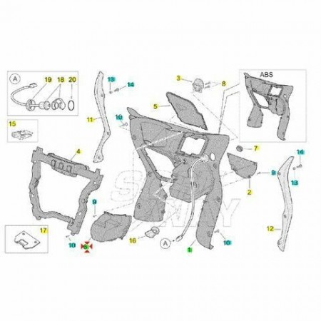(R.11385) Vendo vano portaoggetti usato per Aprilia Scarabeo 500 cc dal 2003 con codice Aprilia AP8168160 di colore nero , danneggiato come da foto , per applicazioni ed esploso vedere foto