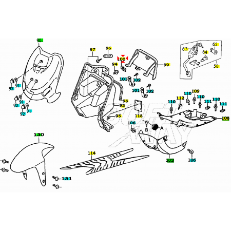 (R.20605) Vendo molla fissaggio serratura nuova del portaoggetti per Kymco Agilty - People - X Citing - Heroism - Sniper - Like - X Citing - Mxu - Dj - Cx - K8 - Movie - Vivio dal 1991 al 2023 con codice Kymco 00154006 , per applicazioni e spaccato vedere foto