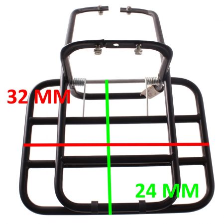 (R.21756) Vendo portapacchi posteriore nuovo per Piaggio Vespa ET3 125 cc di colore nero marca CDR originale d'epoca fondo di magazzino con larghezza ribaltina 32 mm e lunghezza 24 mm , per misure vedere foto