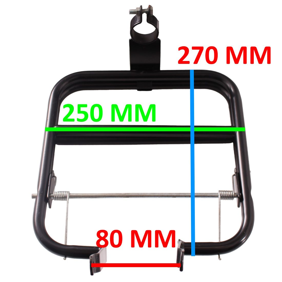 (R.23449) Vendo portapacchi anteriore nero nuovo per Ciao con altezza 270 mm e larghezza 250 mm e distanza tra le staffe di fissaggio inferiori 80 mm , per misure vedere foto