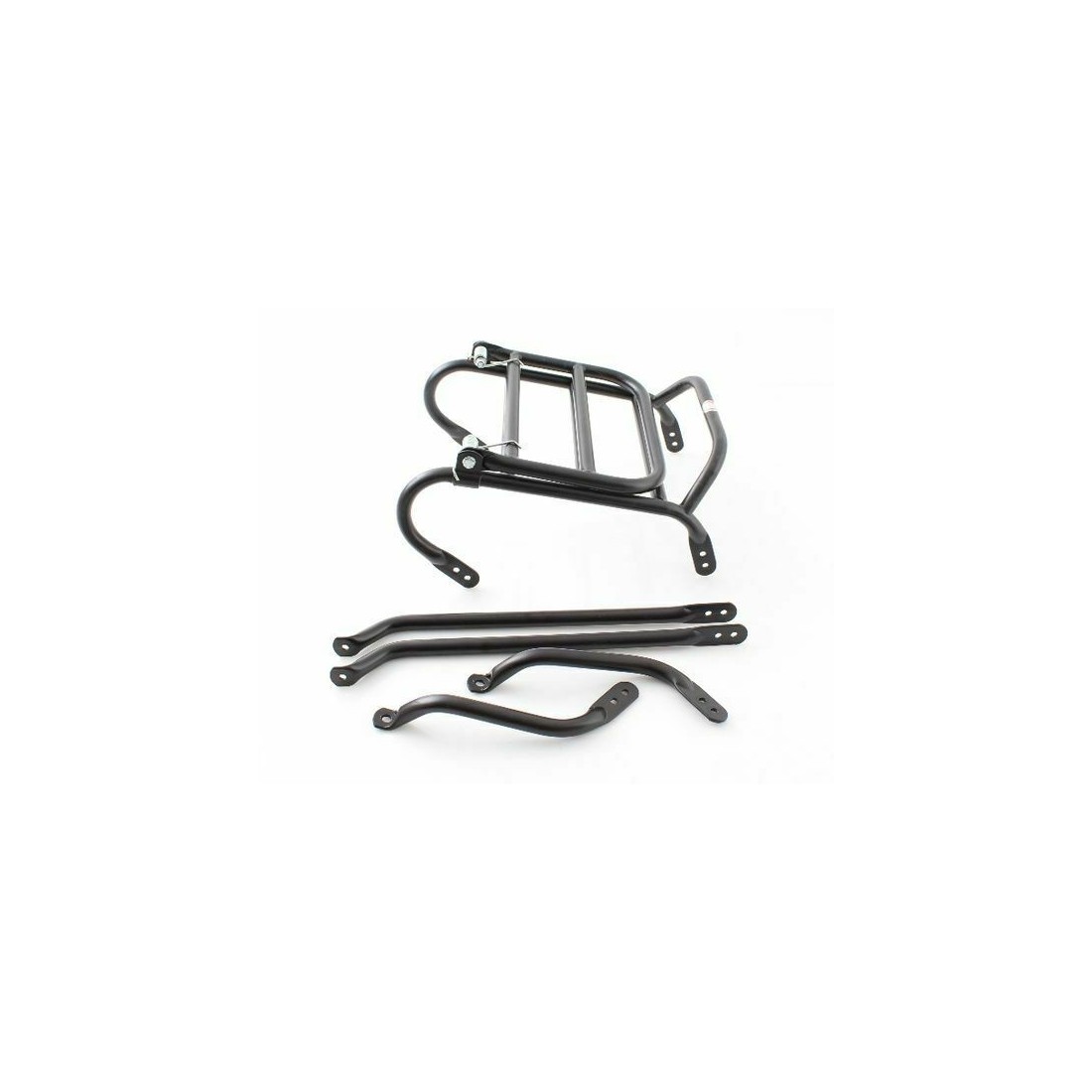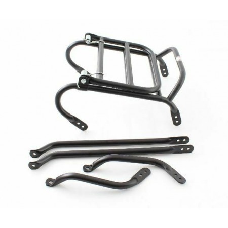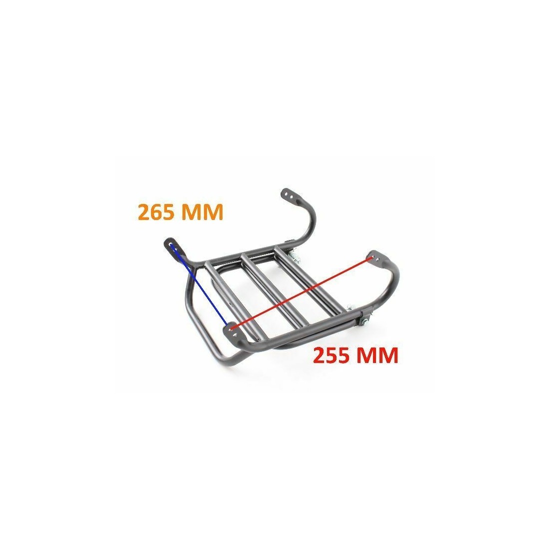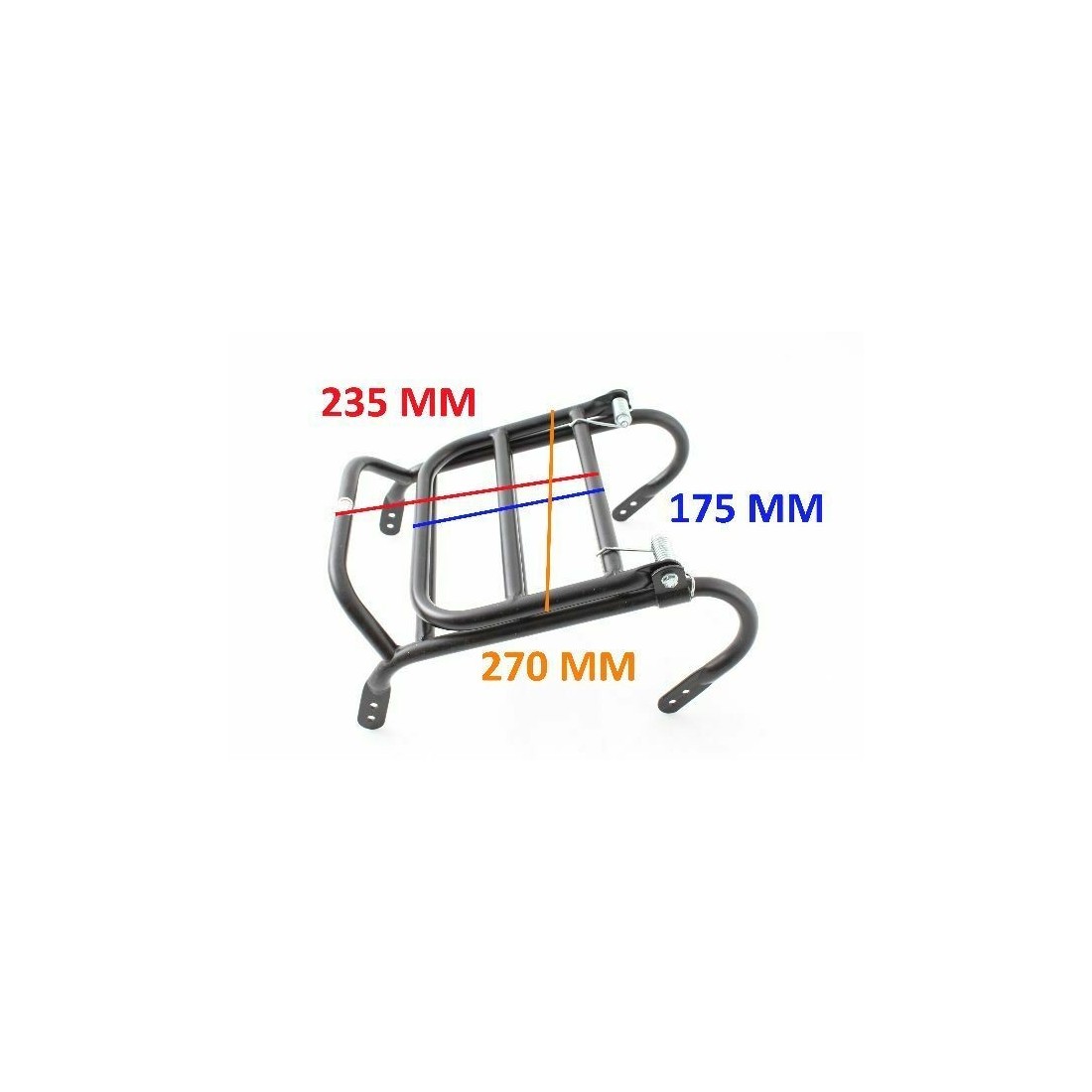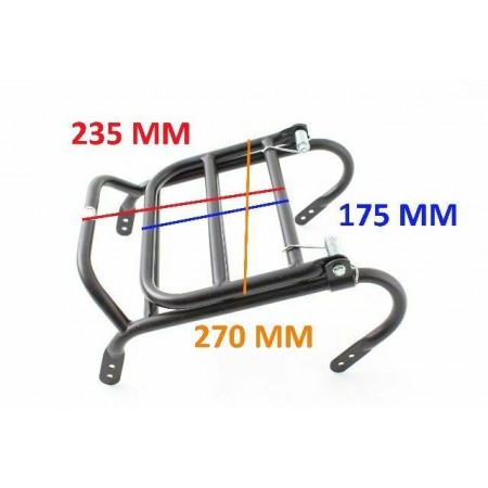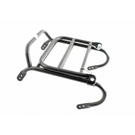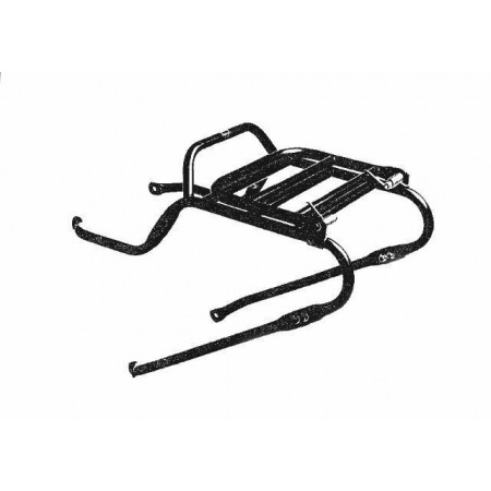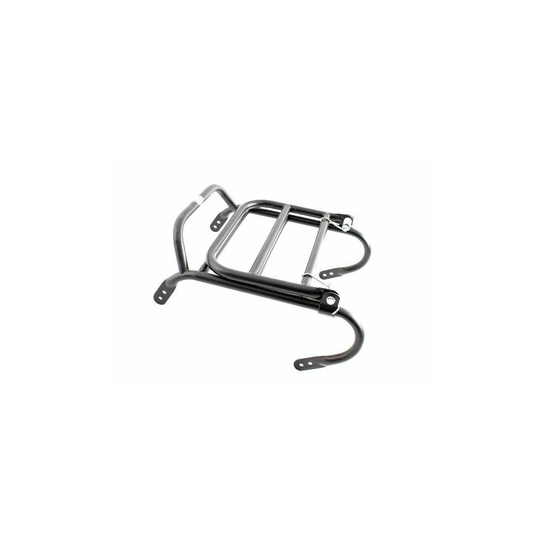 (R.7686) Vendo portapacchi anteriore nuovo per Gilera RX Arizona - XR Tiger 125 - RX 200 Arizona di colore nero originale dell'epoca e completo di supporti e viti di fissaggio , per misure vedere foto
