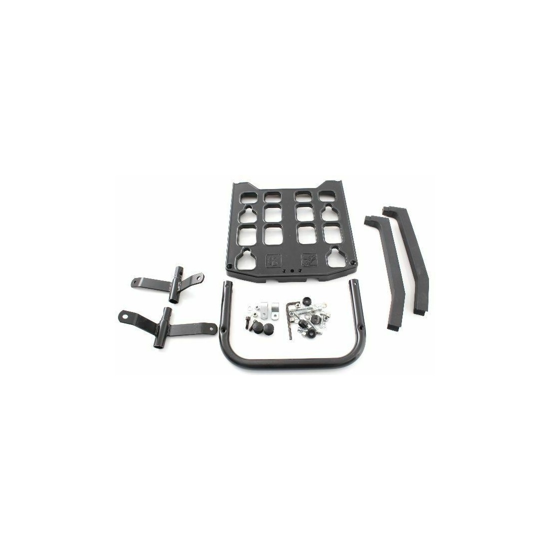 (R.7272) Vendo piastra portapacchi posteriore nuova e completa di staffe e viti di fissaggio per Cagiva SXT e Aletta Rossa 125 cc marca kappa con codice 5995 di colore nero marchiata Travel alluminium , per misure vedere foto