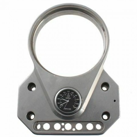 (R.11633) Vendo supporto strumenti completo di orologio usato in alluminio per motocicli tipo Harley Davidson Sportster di marca Rizoma , per misure vedere foto