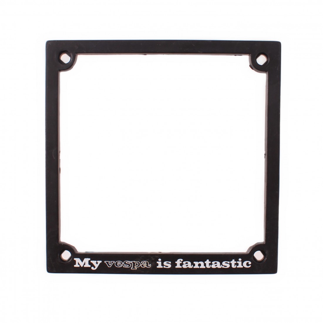 (R.17705) Vendo cornice porta targa nuova per Piaggio Vespa marca Stil Motor marchiata ART E240 serigrafato My Vespa is fantastic per targhe fino al 1999 con iterasse fori 14,5 cm x 14,5 cm e diametro esterno 17 cm x 17 cm