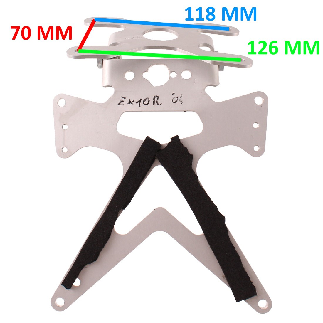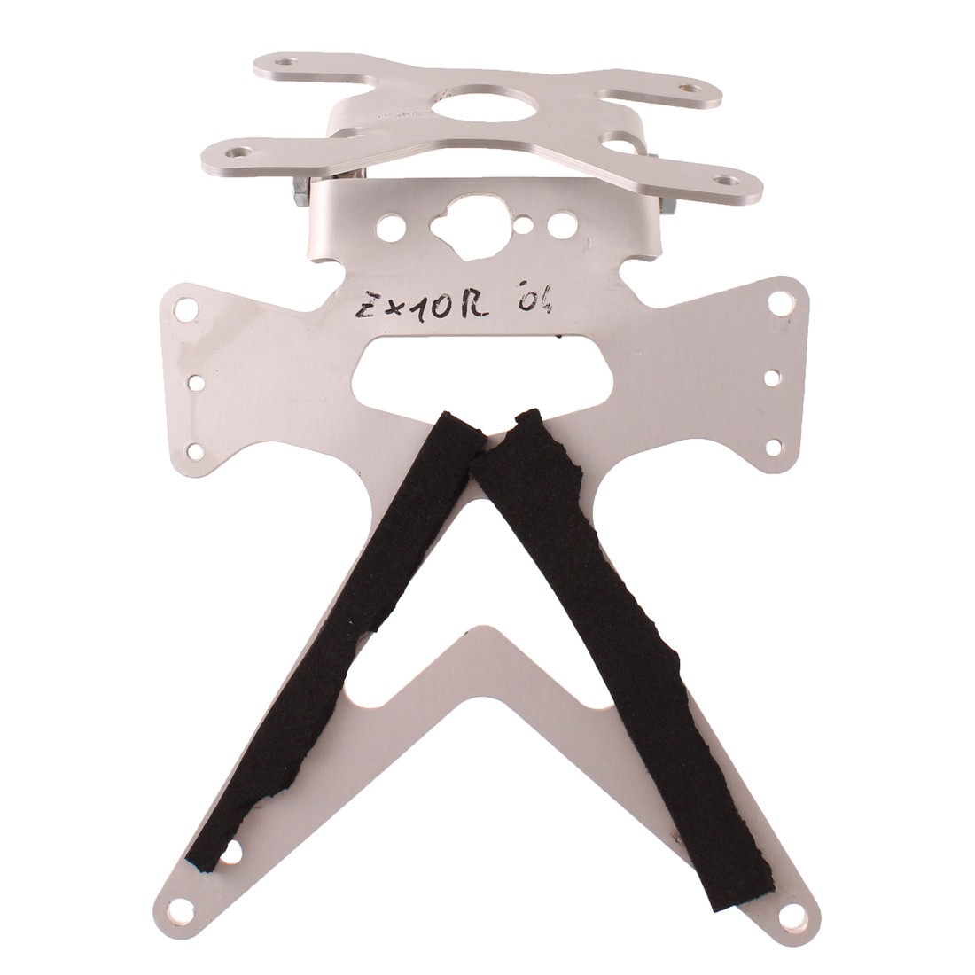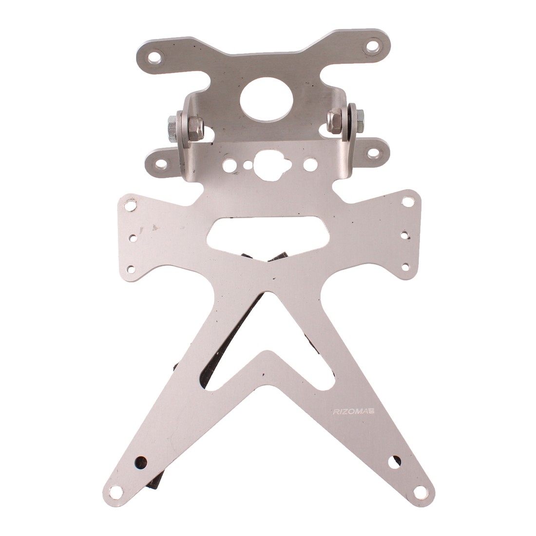 (R.18928) Vendo portatarga modifica racing usato per Kawasaki Ninja ZX-6R 636 cc e ZX-10R 1000 cc dal 2003 al 2004 marca Rizoma in acciaio inox con interasse fori staffa 118 mm - 70 mm - 126 mm , staffa di fissaggio leggermente piegata come da foto , controllare misure prima dell'acquisto