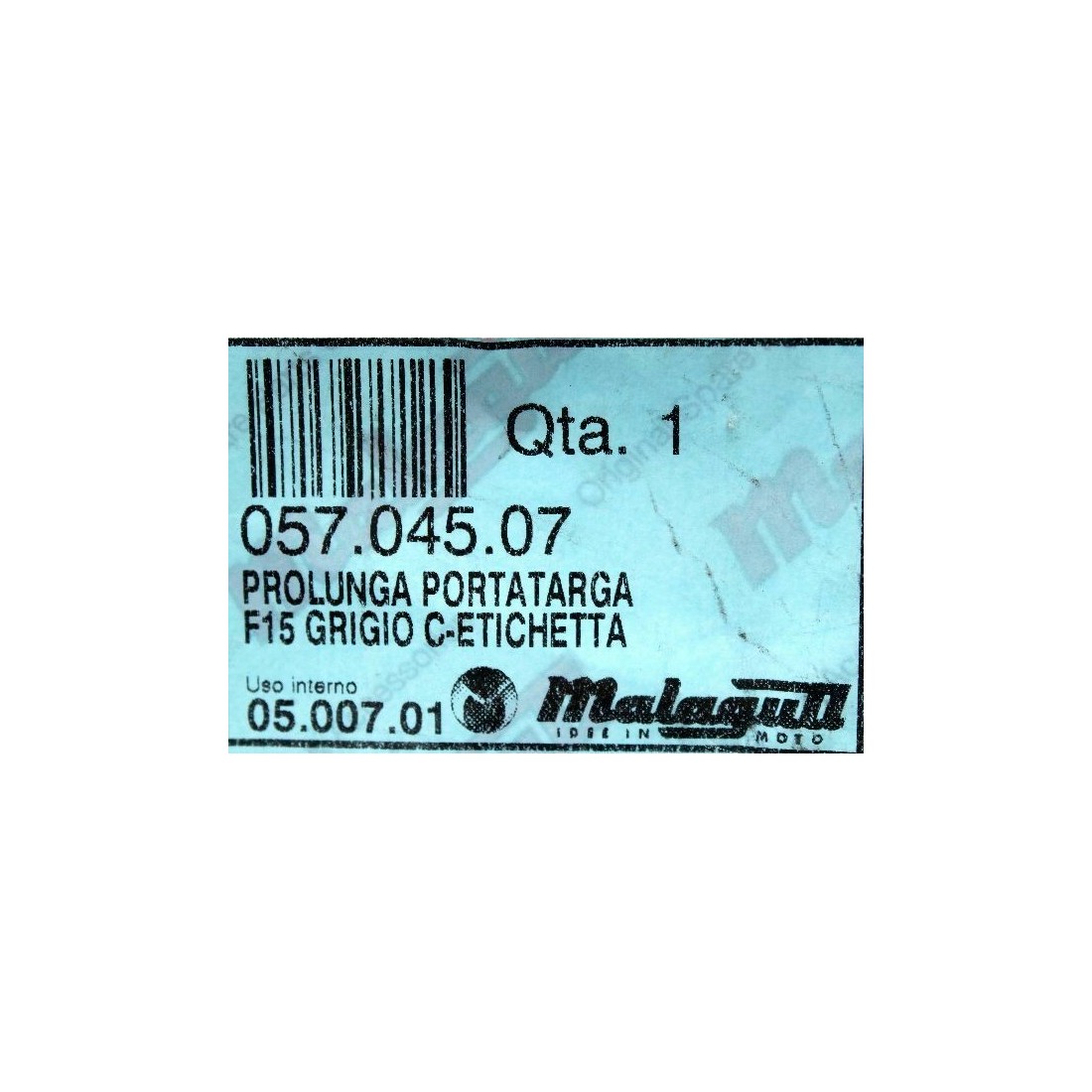 (R.8743) Vendo prolungamento portatarga nuovo per Malaguti F15 Fire Fox - LC 50 cc dal 1996 per telai 73K20173 - 44 - 4400000 - 44000044 in plastica di colore grigio completo di adesivo con codice Malaguti 057.045.07 - 05704507, 05704503 , per applicazioni vedere foto