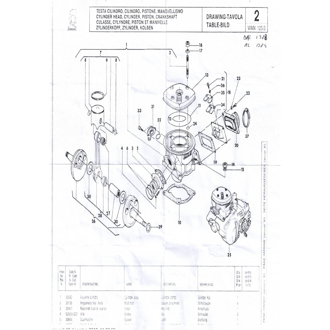 (R.16454) Vendo prigioniero del cilindro nuovo per Cagiva WMX 125 con codice 800033136 - 33136 , per esploso vedere foto , il prezzo si intende per il singolo pezzo , più pezzi disponibili