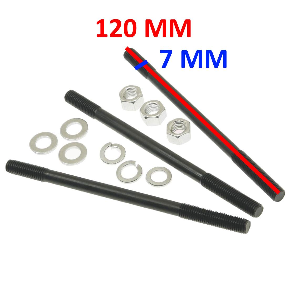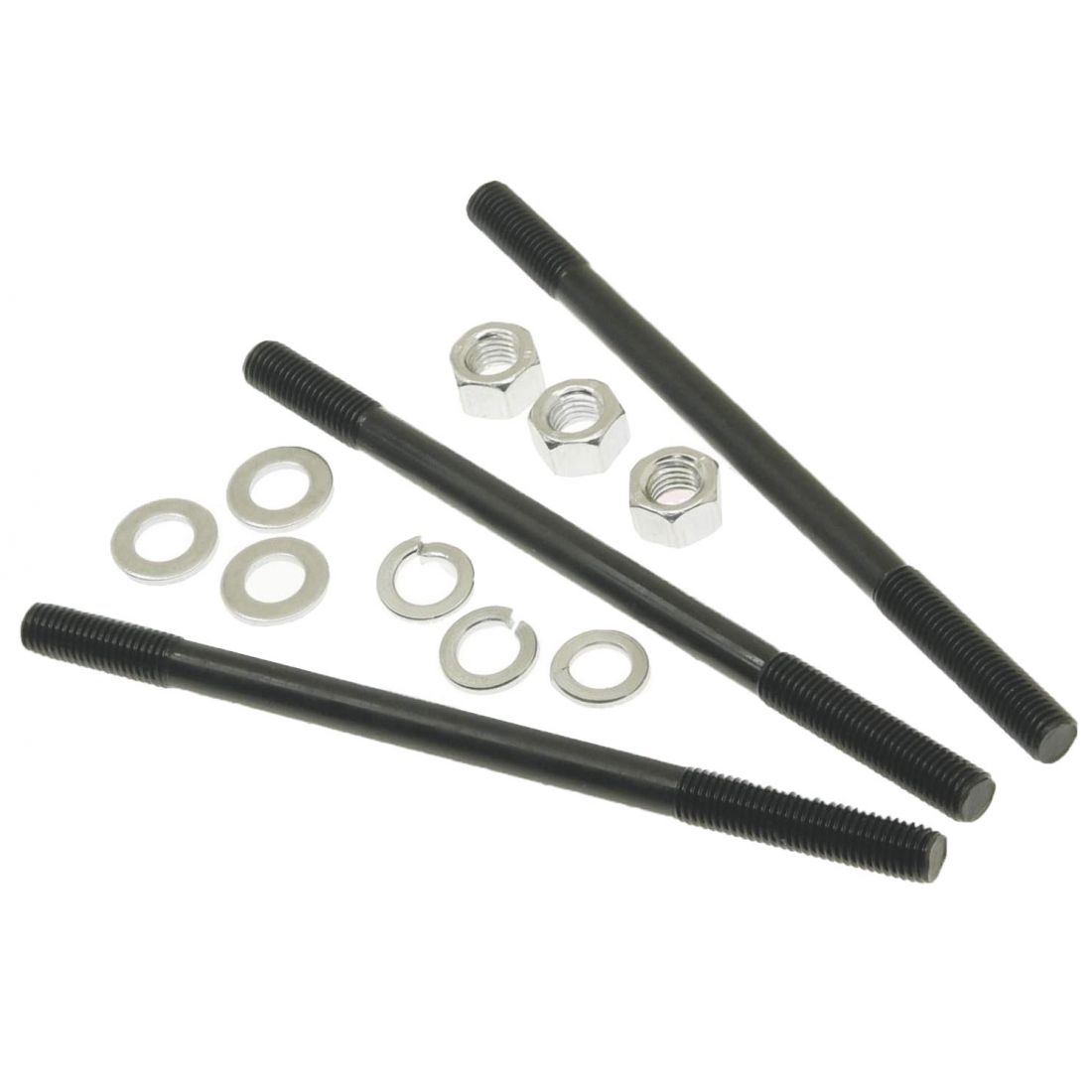 (R.22940) Vendo kit di fissaggio del cilindro nuovo per Piaggio Ciao - Bravo - Boxer - SI' - FBM P6 con diametro prigioniero da 7 mm e lunghezza di 120 mm , composto da 3 prigionieri cilindro e 3 rondelle Grower con 3 rondelle piane e 3 dadi , per misure vedere foto