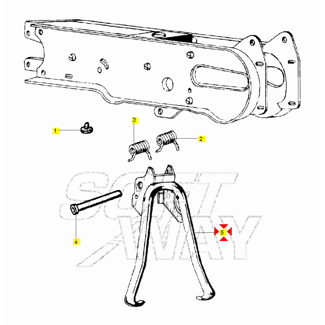 - Numero 2 : Cavalletto nudo senza kit di fissaggio marca Piaggio con codice 256520T , euro 20