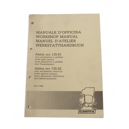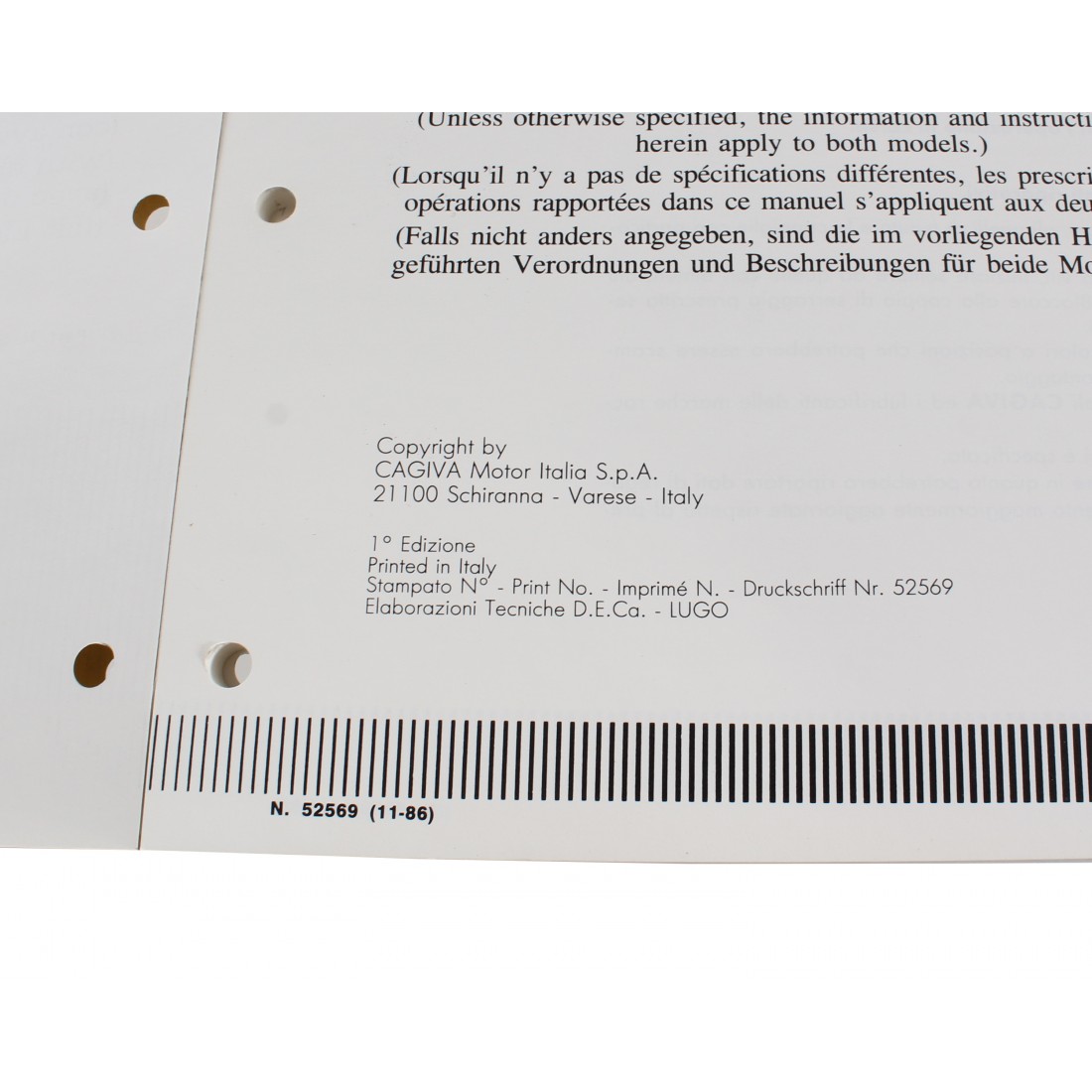 (R.15631) Vendo manuale riparazioni nuovo originale per Cagiva Aletta Oro 125 S1 e S2 con codice 800052569 - 52569 prima edizione del 1986 in italiano - inglese - francese - tedesco , copertina posteriore danneggiata come da foto , disponibili più modelli :